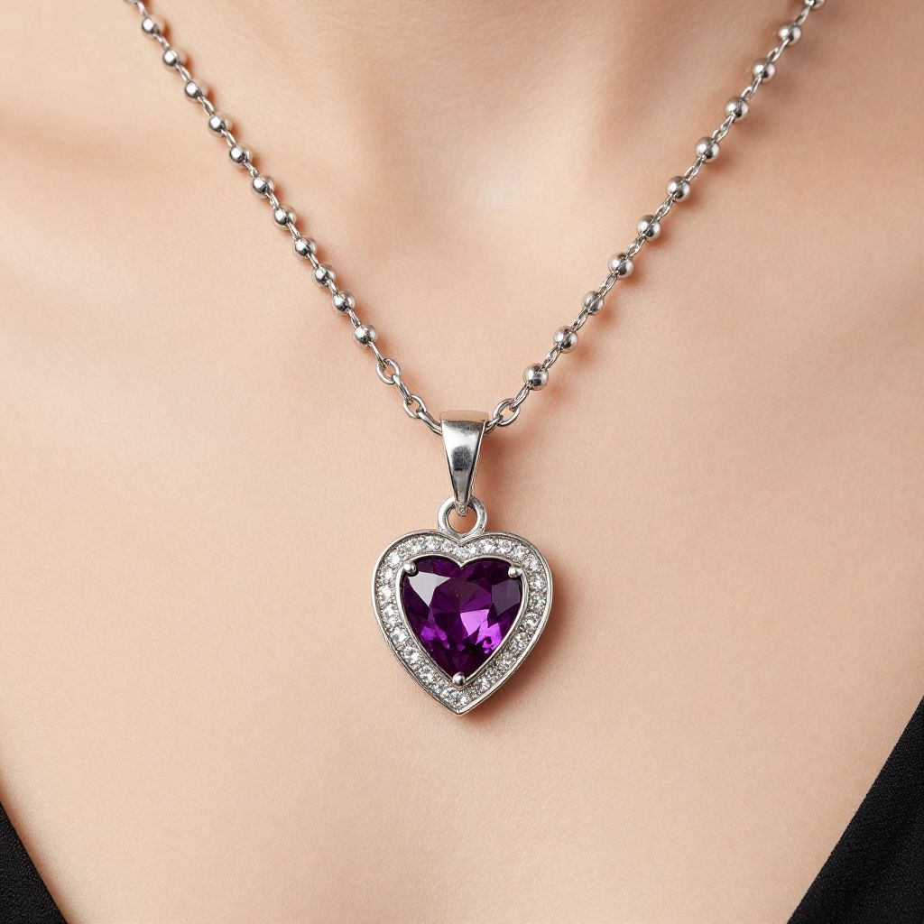 Garnet Rosary Necklace with Diamond Heart Pendant