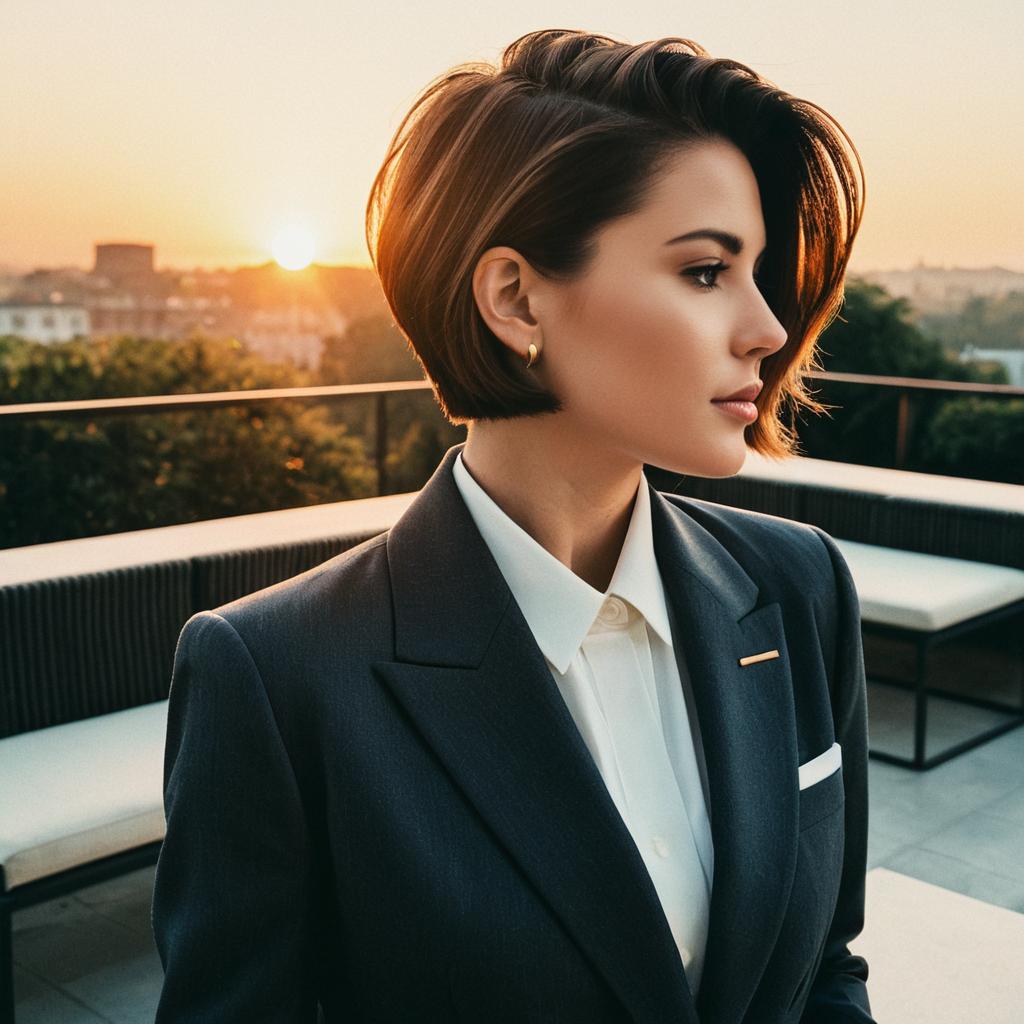 Woman with Taper Cut Hairstyle on Urban Rooftop