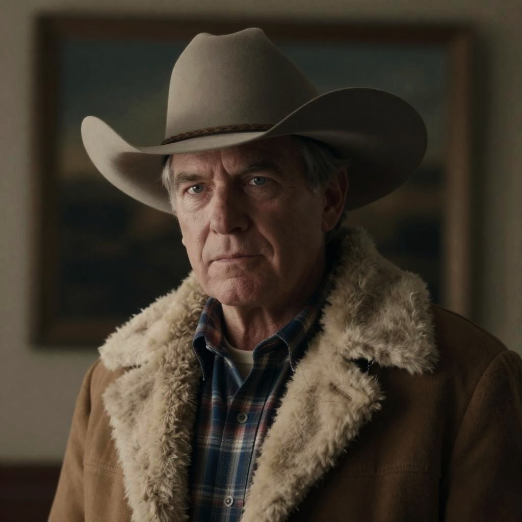 Middle-aged Man in Cowboy Hat and Embroidered Jacket