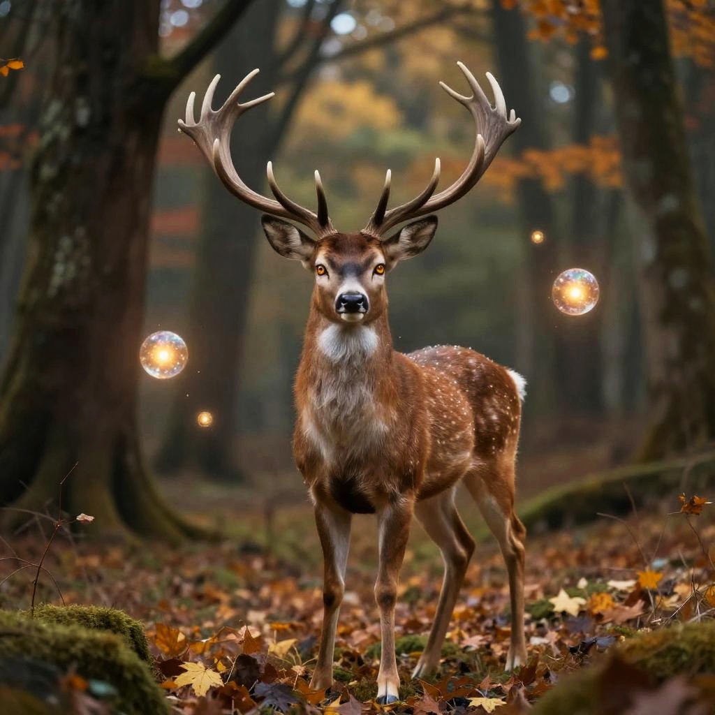 Forest Guardian Deer Spirit with Magical Orbs