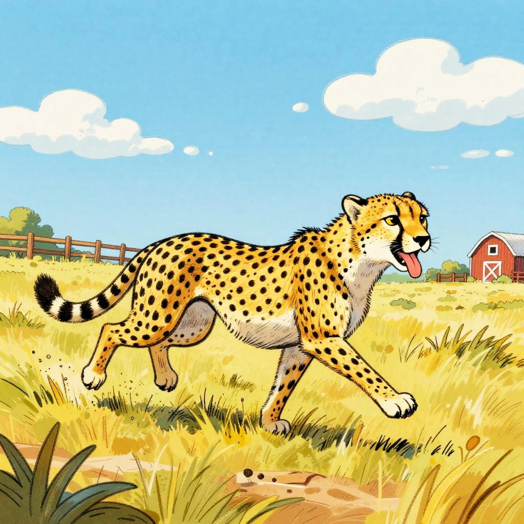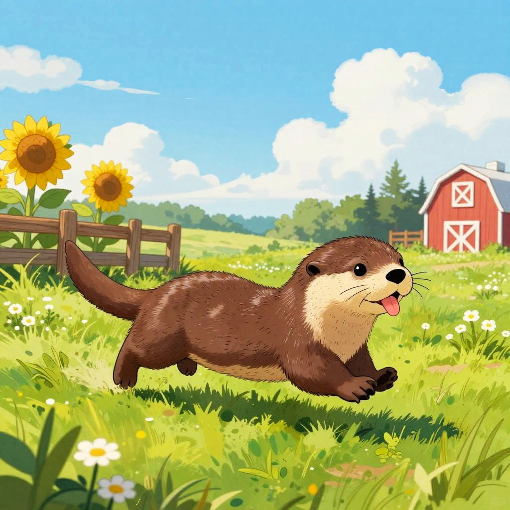 Cartoon Pony Running in Sunny Field