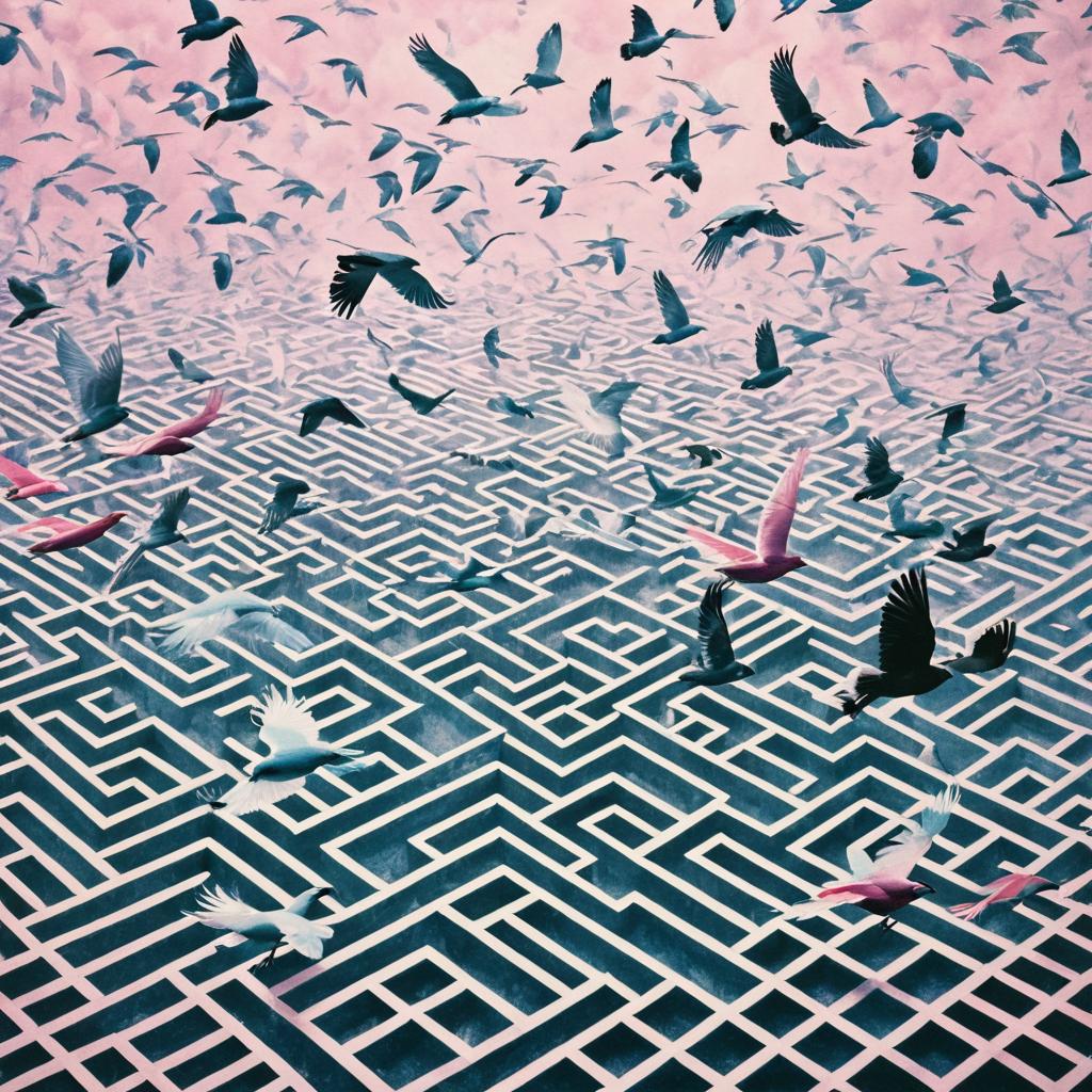 An extremely hyperrealistic weird surreal vintage analog retro psychedelic collage of an optical illusion pattern created using the colors bubblegum pinks, baby blues, white, translucent, and metallic silver. retro televisions, moiré patterns