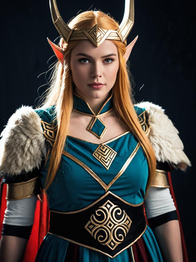 Sexy cosplay woman character wearing Freyja Wion costume. Realistic photo. Jane Doe dressed as Freyja Wion --sref 1404