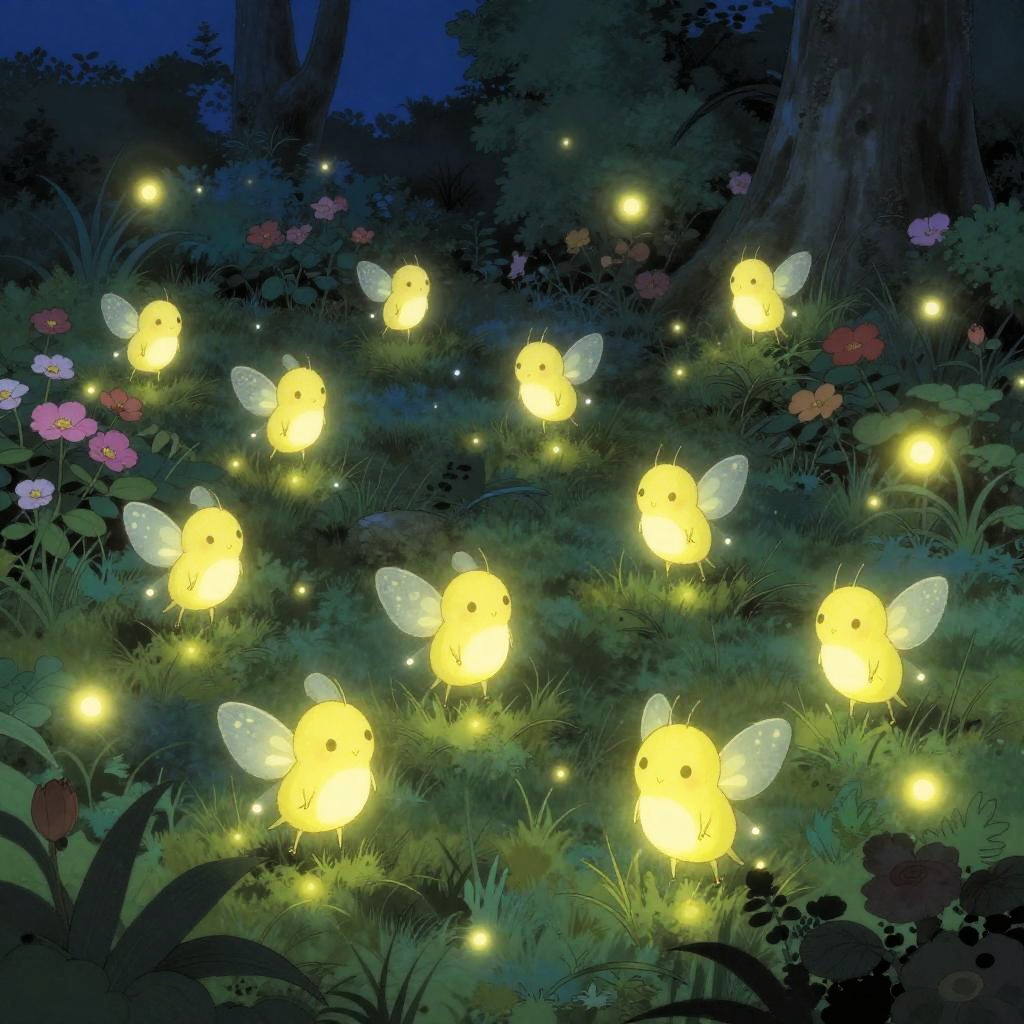 Joyful Firefly Spirits in Twilight Garden