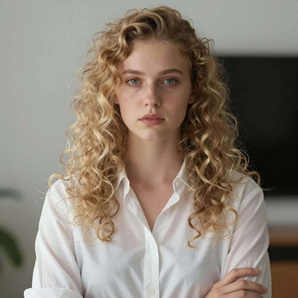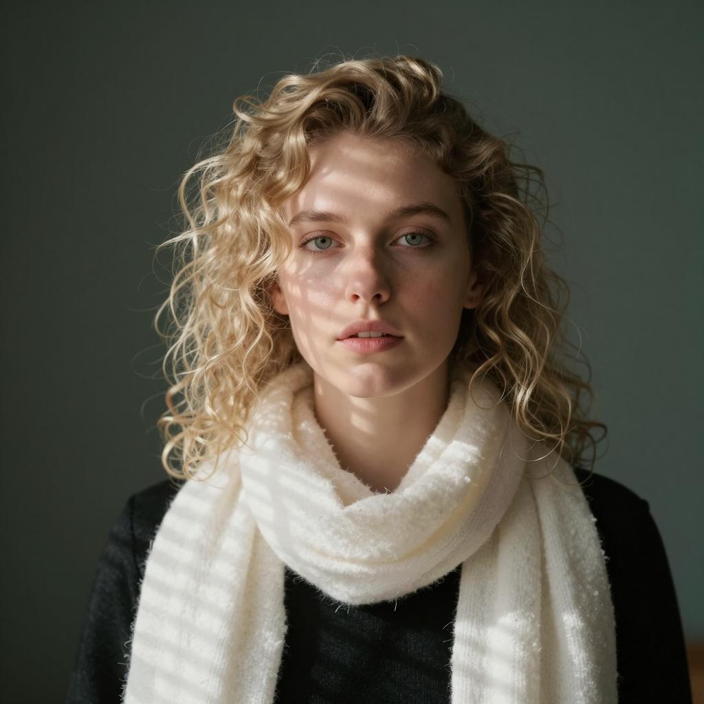 Blonde Woman with Curly Hair and White Scarf