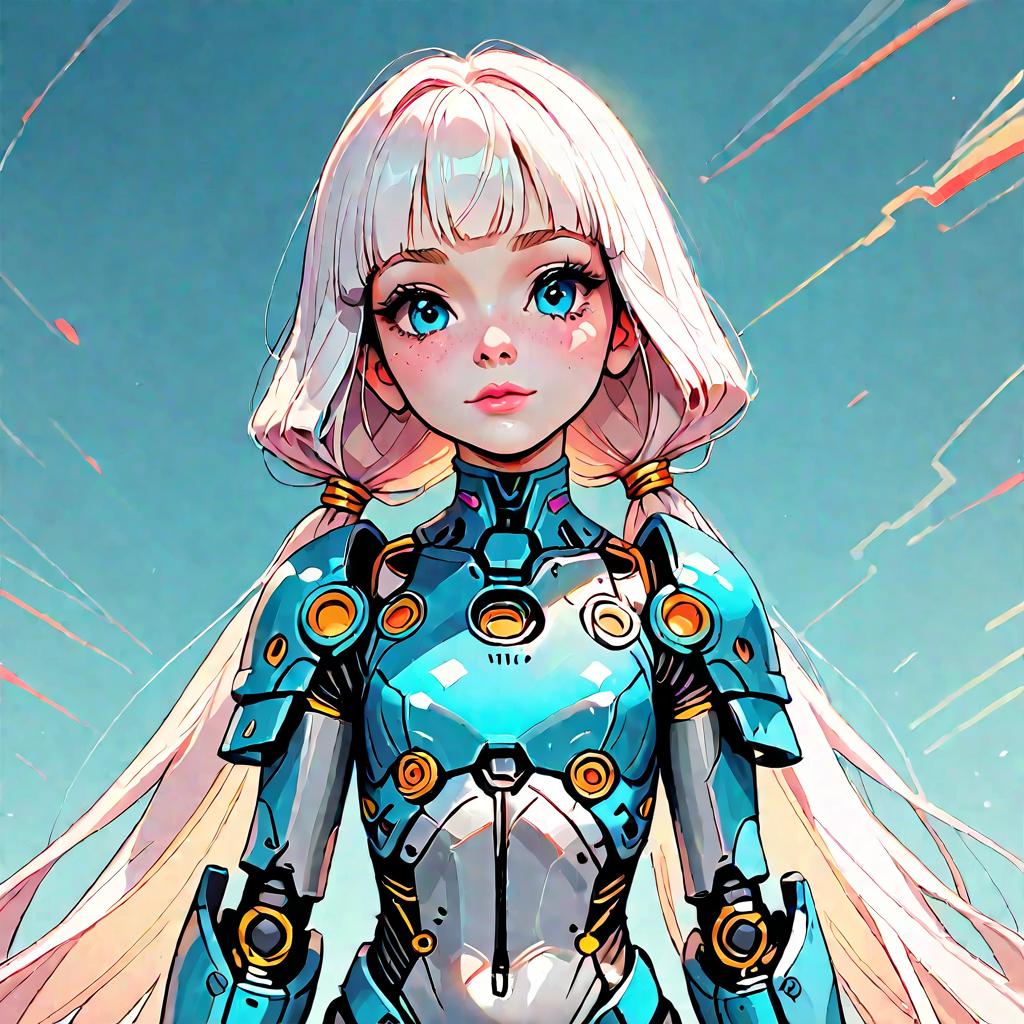 Score_9, score_8_up, score_8, score_7_up, score_7, score_6_up, score_6, score_5_up, Score_5, rating_questionable, (young:1.8), low twin-tails, hime cut, intricate details, (cute:1.3), (petite:1.6), skinny, standing, cyborg, cybernetic armor, very long hair, huge cyvernetic shoulder armor