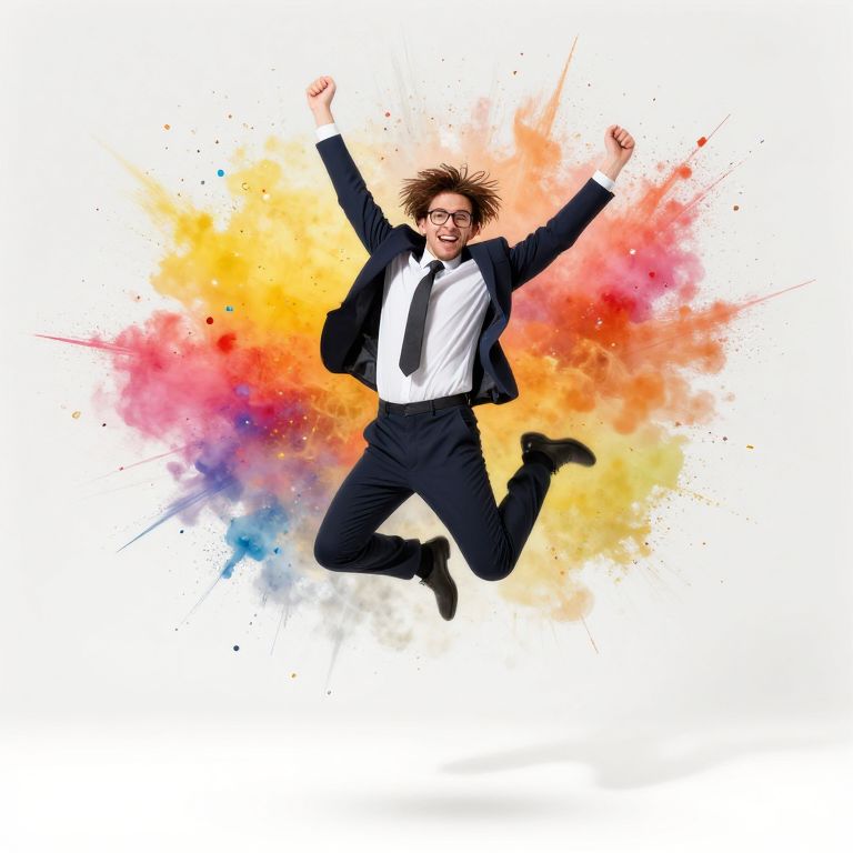 Tender A high-energy image of a business owner jumping in front of a colorful explosion of confetti, illustrating the excitement and rewards of being an entrepreneur.,