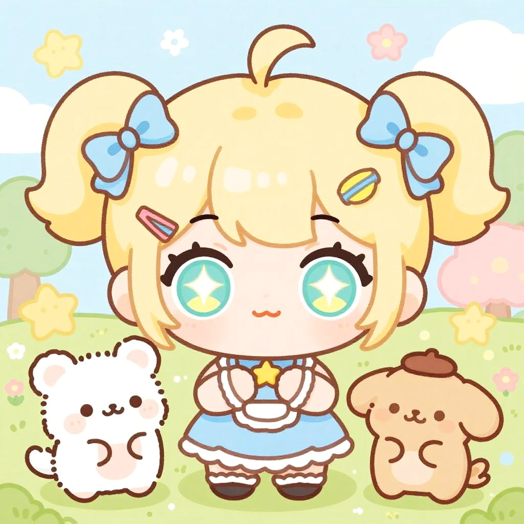 Chibi art ideas featuring adorable tiny characters with oversized heads and large sparkling eyes, set in colorful fantasy backgrounds, surrounded by cute animals and whimsical elements, rendered in soft pastel tones with intricate linework and charming expressions