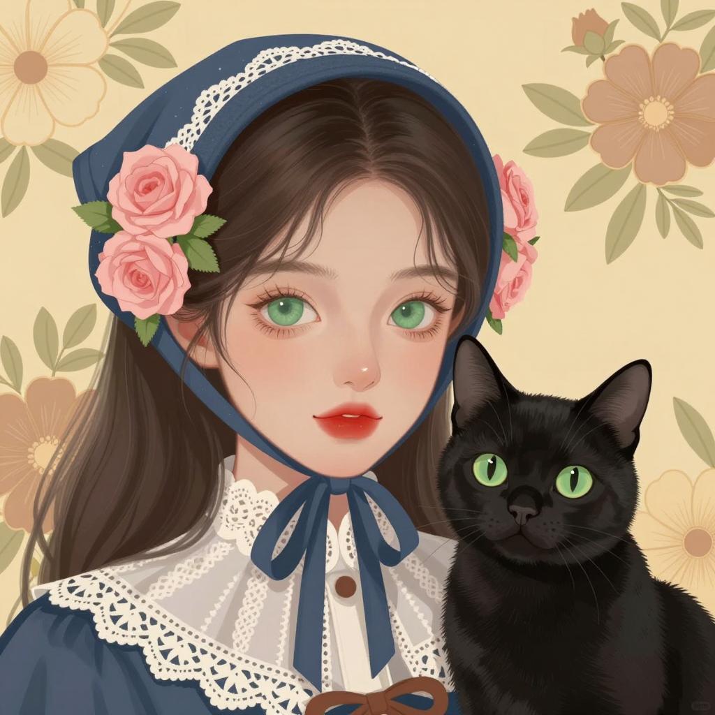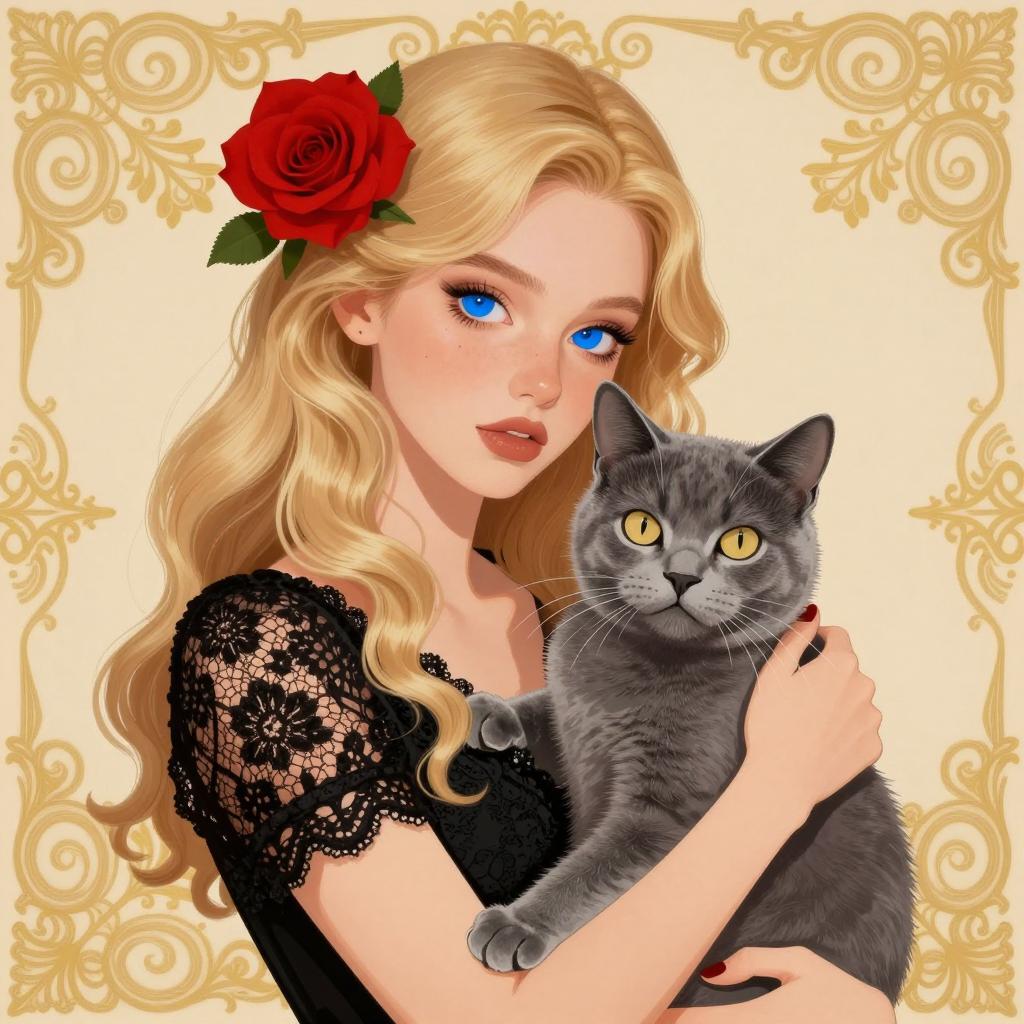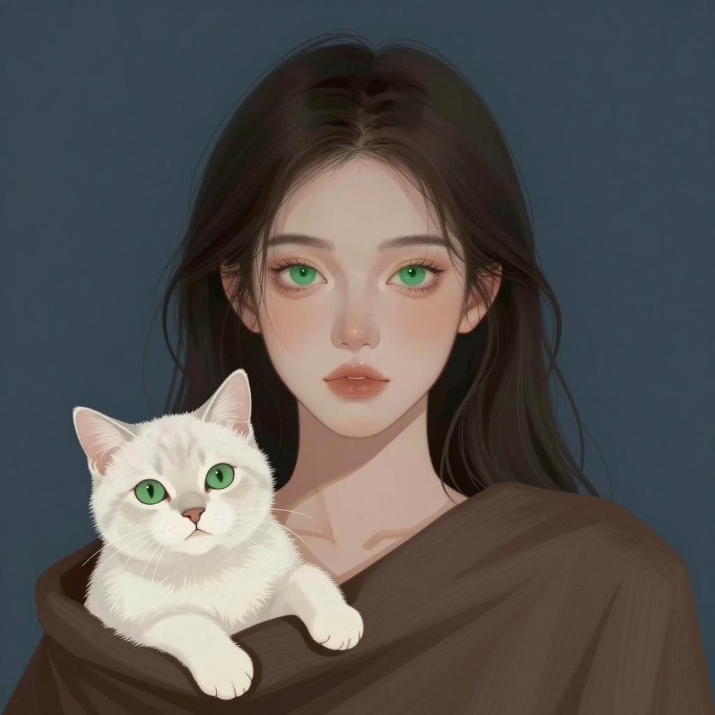 Elegant Woman with Cat in Dark Background