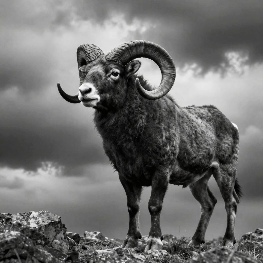 Dramatic Monochrome Ram Side Profile