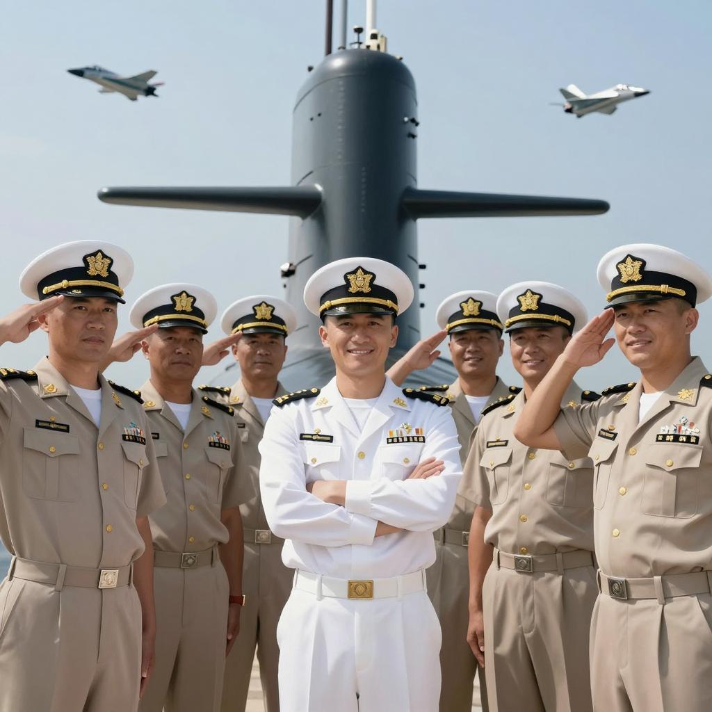 Three male soldiers in uniform. Front soldier salutes with right hand, smiling, wearing black peaked cap, dark gray uniform with white shirt and black tie, name tag reading "HARTMAN". Background soldiers partially visible, also in dark gray uniforms. Background includes blurred green and yellow foliage. Sunlight illuminates soldiers' faces.