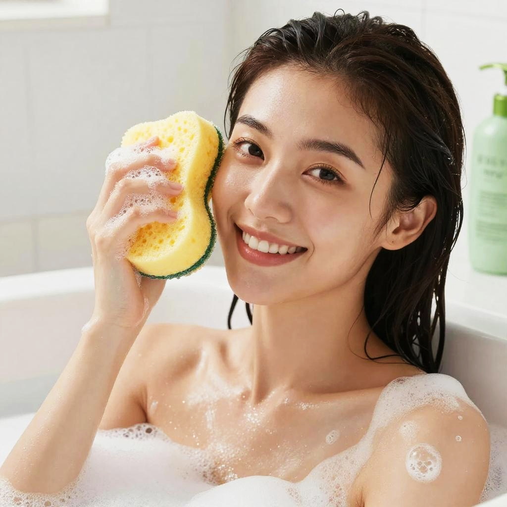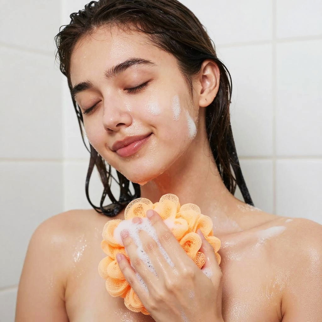 Close-Up Shower Scene with Loofah