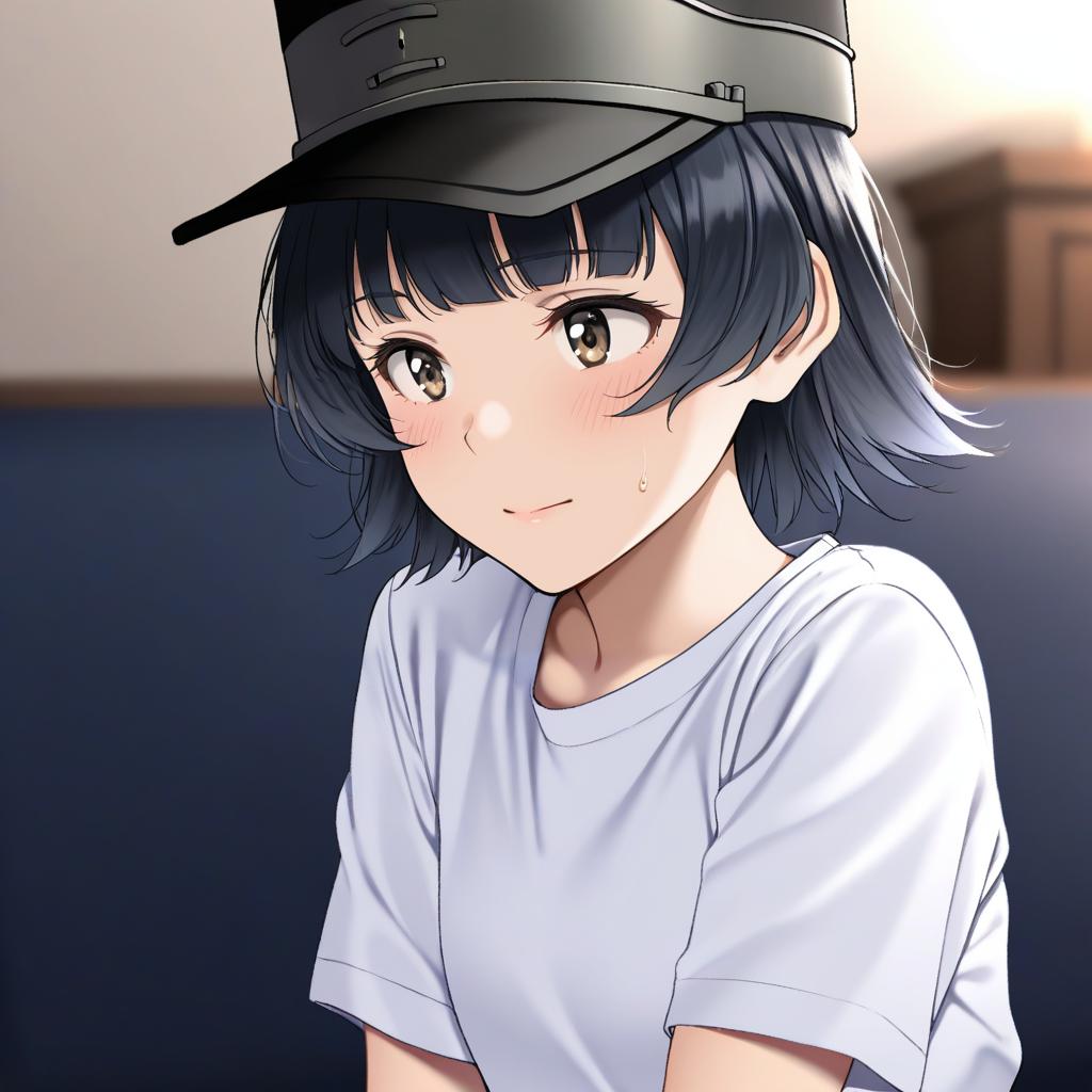 Arare (kancolle), kantai collection, 1girl, brown eyes, short hair, black hair, hat, white shirt, by artist saitou (lynx-shrike), illustrious
