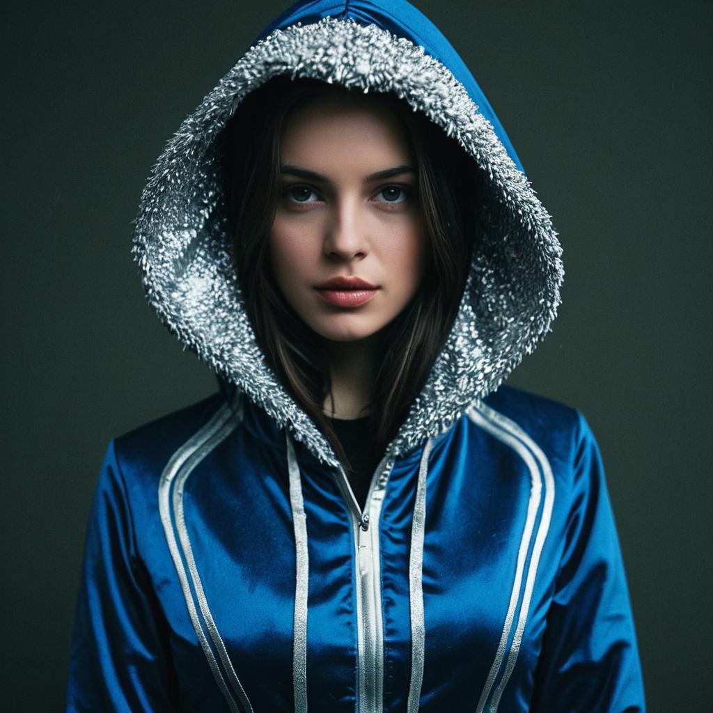Sara in Blue and Silver Hooded Costume