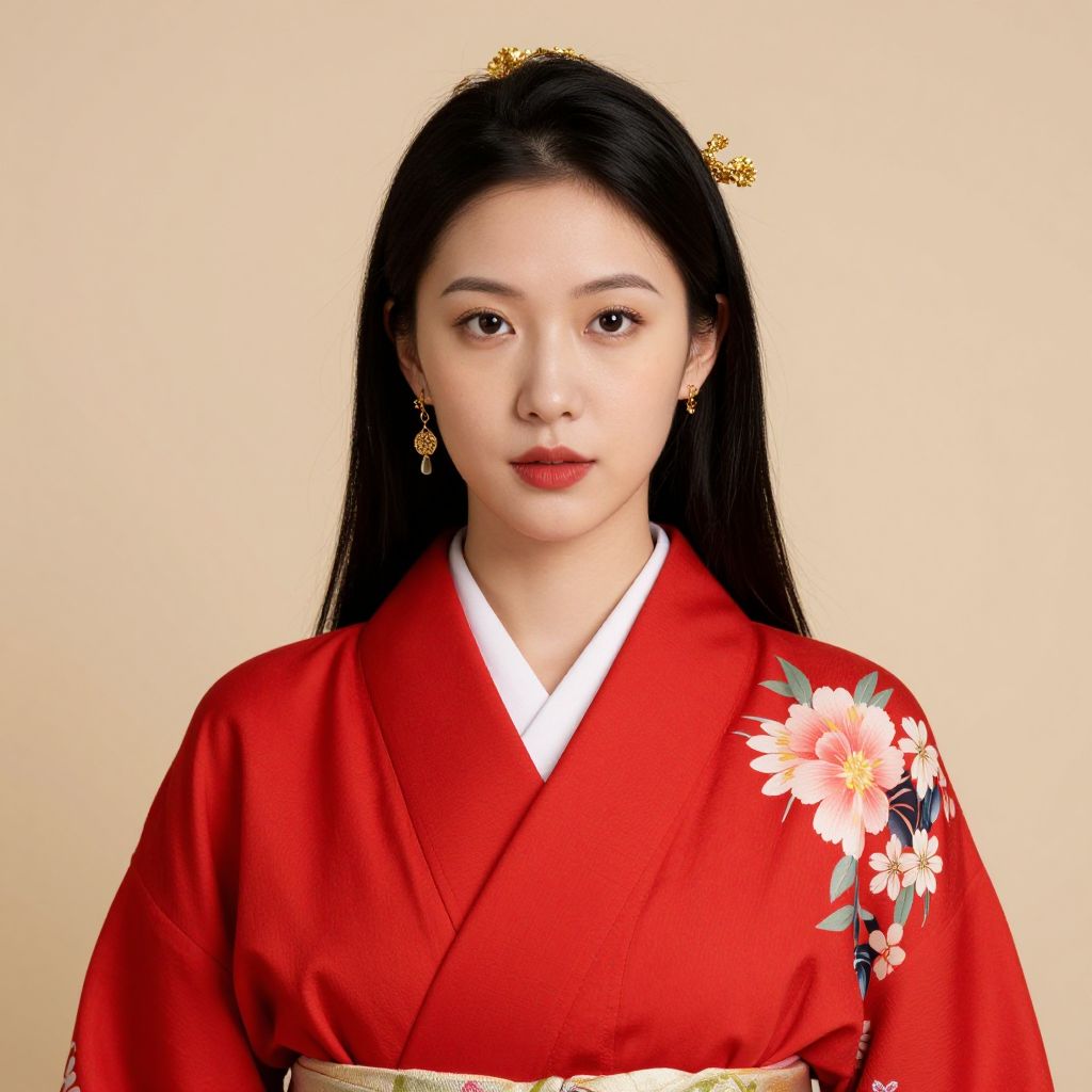 Asian Woman in Red Kimono with Crown