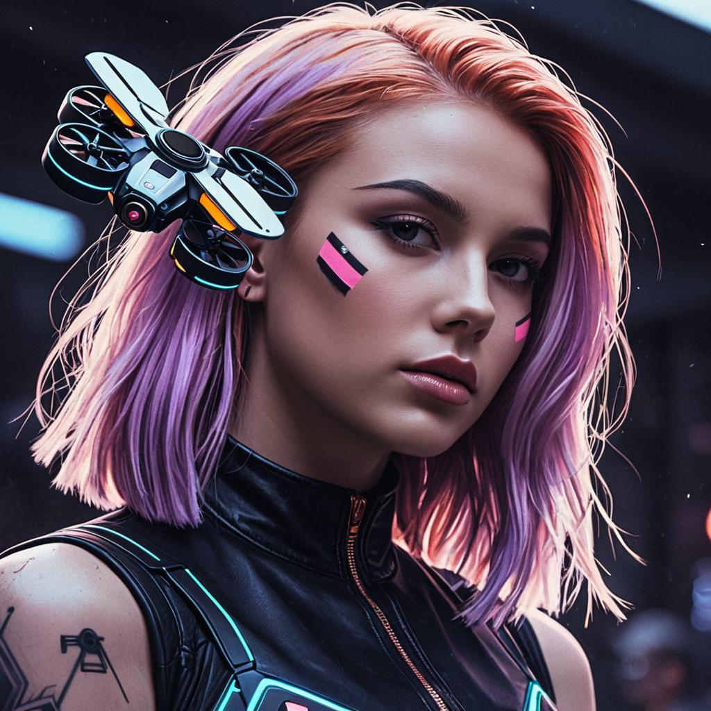 Cyberpunk Girl with Neon Drone