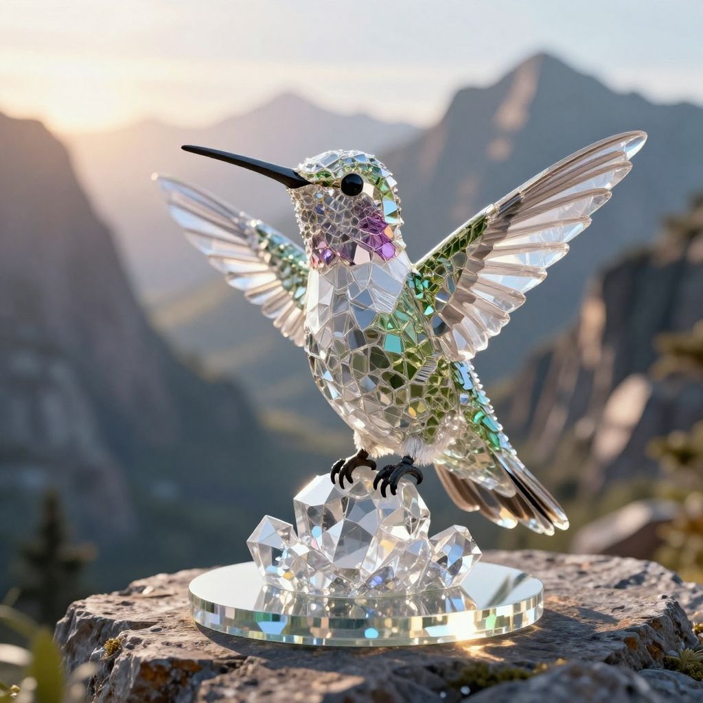 Metallic Bird Sculpture in Fountain