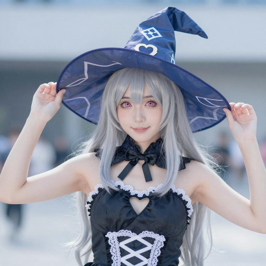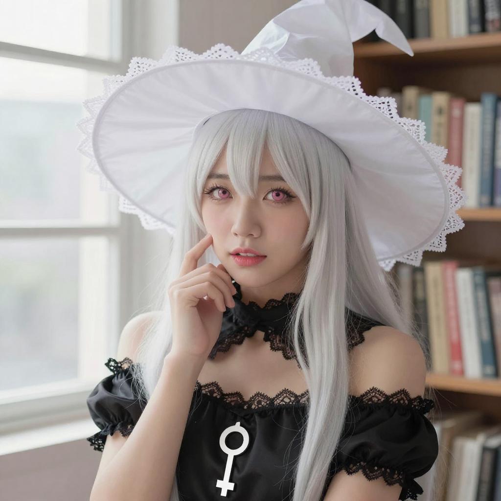 Anime Woman with Platinum Hair and Hat