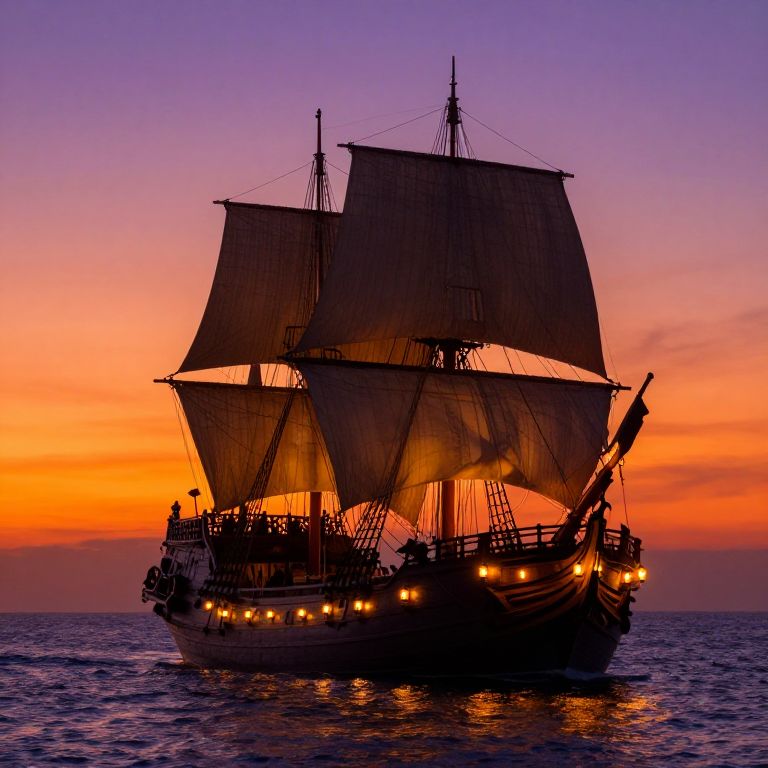 Ancient Sailing Ship at Sunset