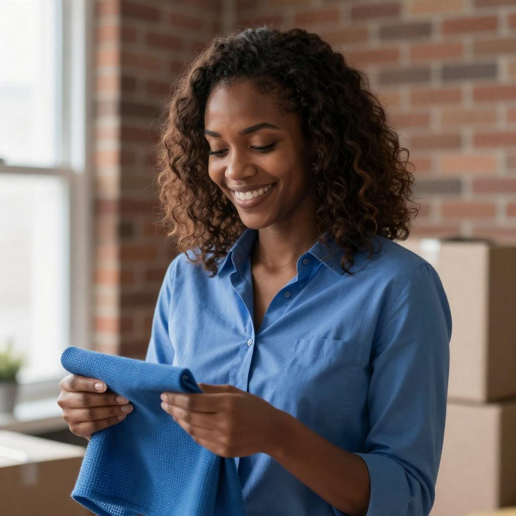 Workers Loading Blue Laundry Truck
