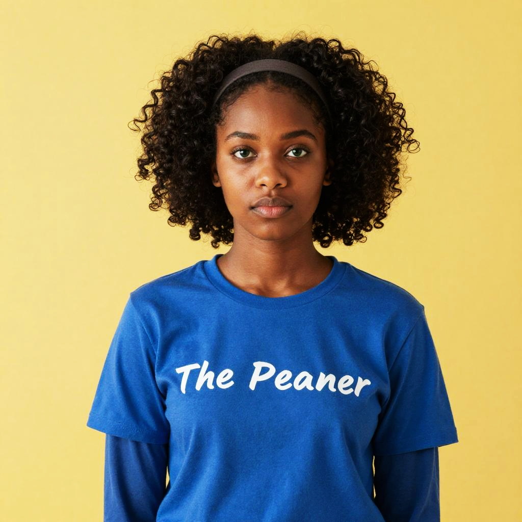 Dark-Skinned Girl with Afro and Shirt