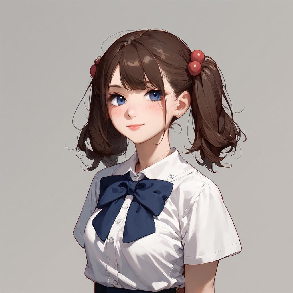 Score_9, score_8_up, score_7_up, score_6_up, score_5_up, score_4_up, source_anime, (3girls), multiple girls, light smile, rally vincent, black hair, tall female, blue eyes, dark skinned female, medium breasts, short hair, on the left, minnie may hopkins, short female, blonde hair, green eyes, flat chest, in the middle, becky farrah, brown hair, freckles, long hair, purple eyes, hairband, small breasts, round eyewear, on the right,