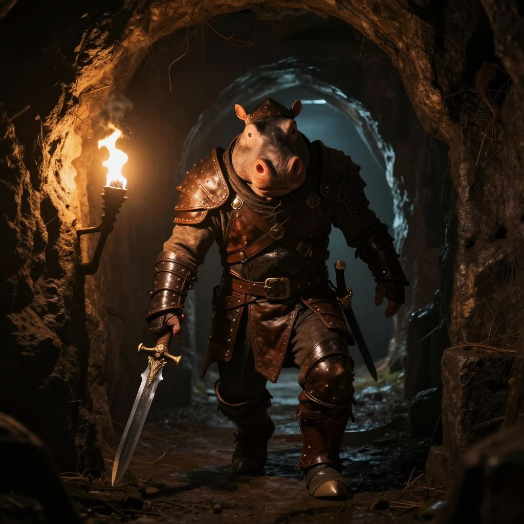 DND Hippo Rogue in Shadowy Dungeon