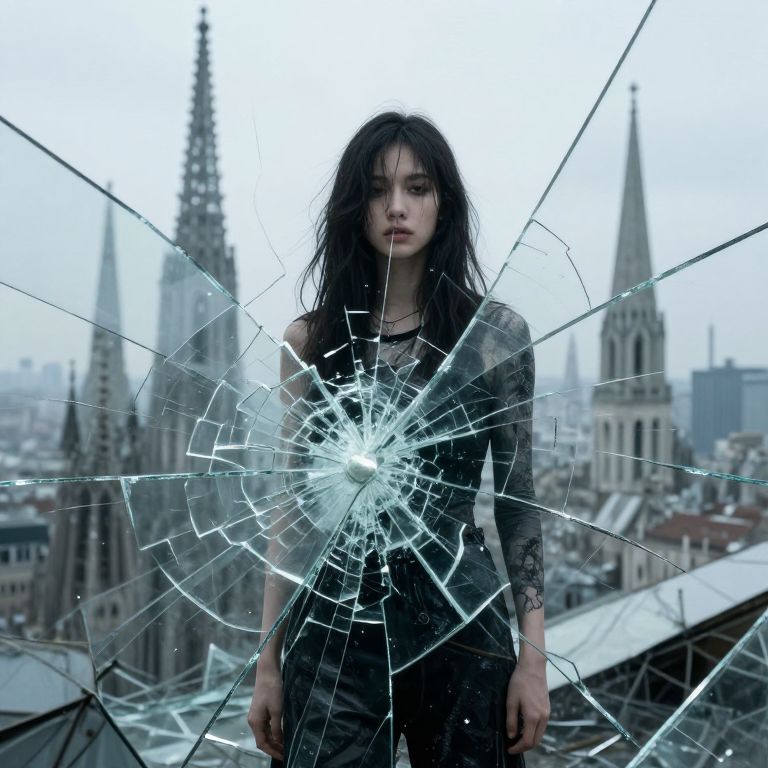 Ff-enhance, Everything feels like it’s barely holding together, shattered glass, fractured spires, and her, caught in the middle of it all, Maybe it’s the glitches or the glow, but she’s less a person and more a memory trying to stay alive, but just out of reach, like all the best things, I guess