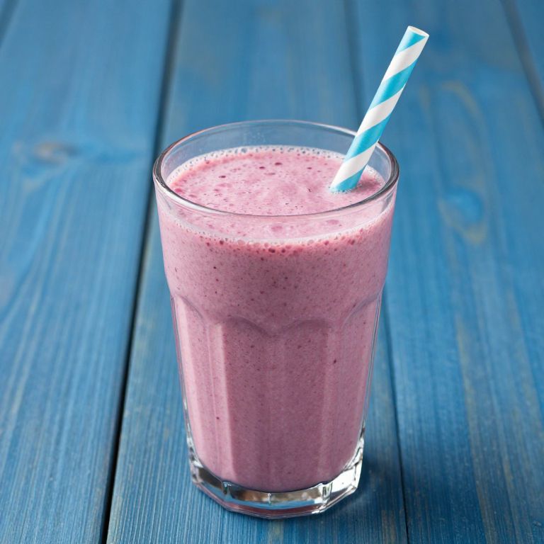 Sculpting This smoothie is packed with nutrients and low in calories on a blue wooden table, making it a great option for those trying to lose weight, realist,