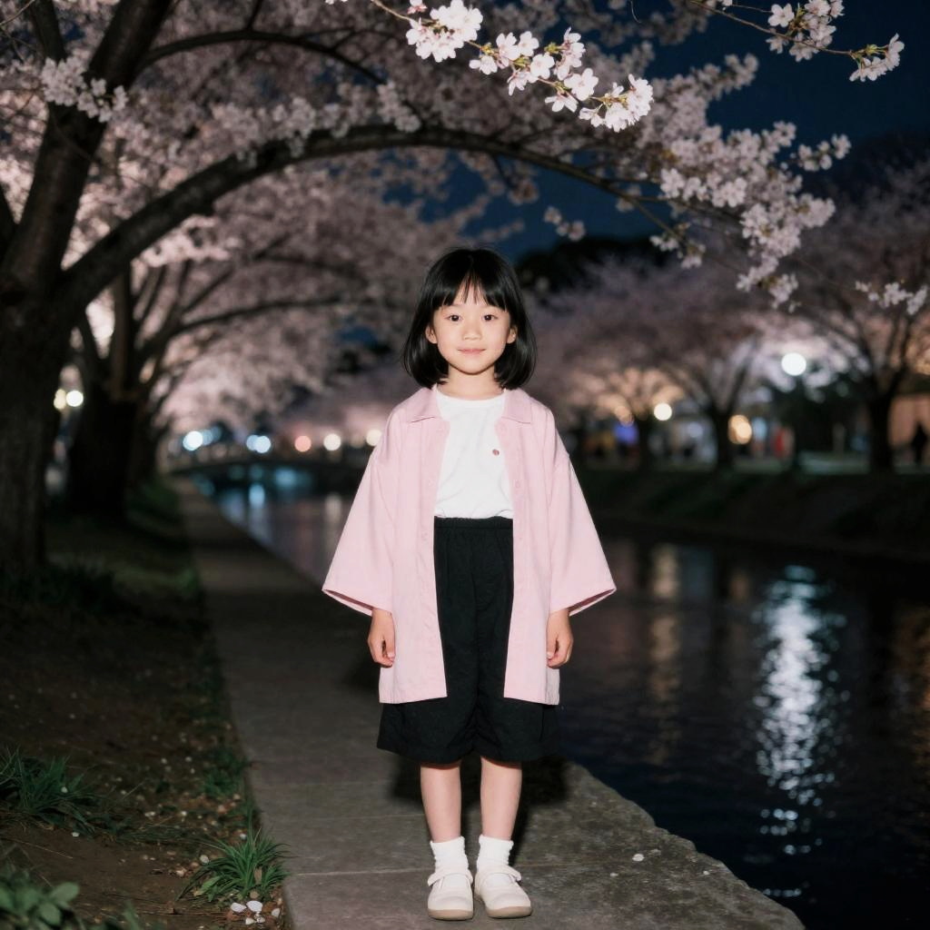 Realistic Night Portrait at Cherry Blossom Park