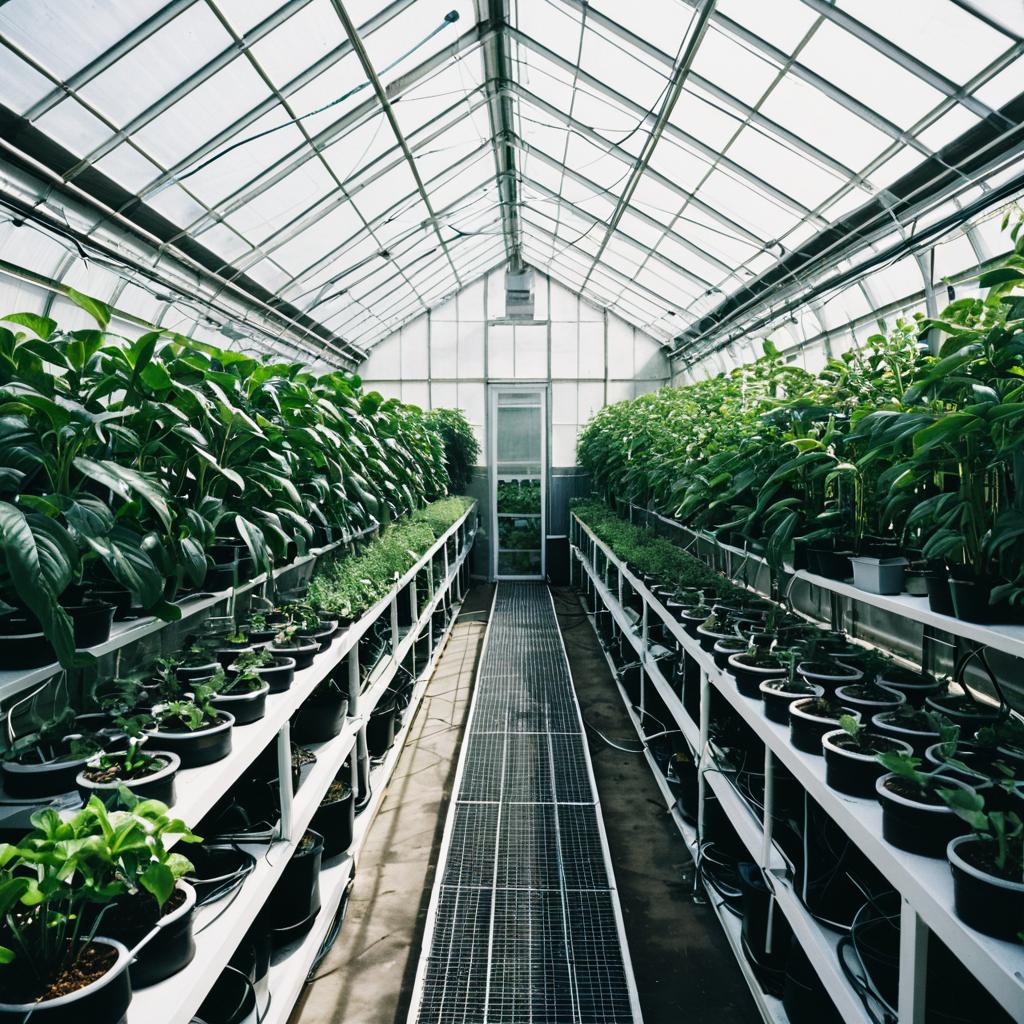 Modern Greenhouse Interior with Plants