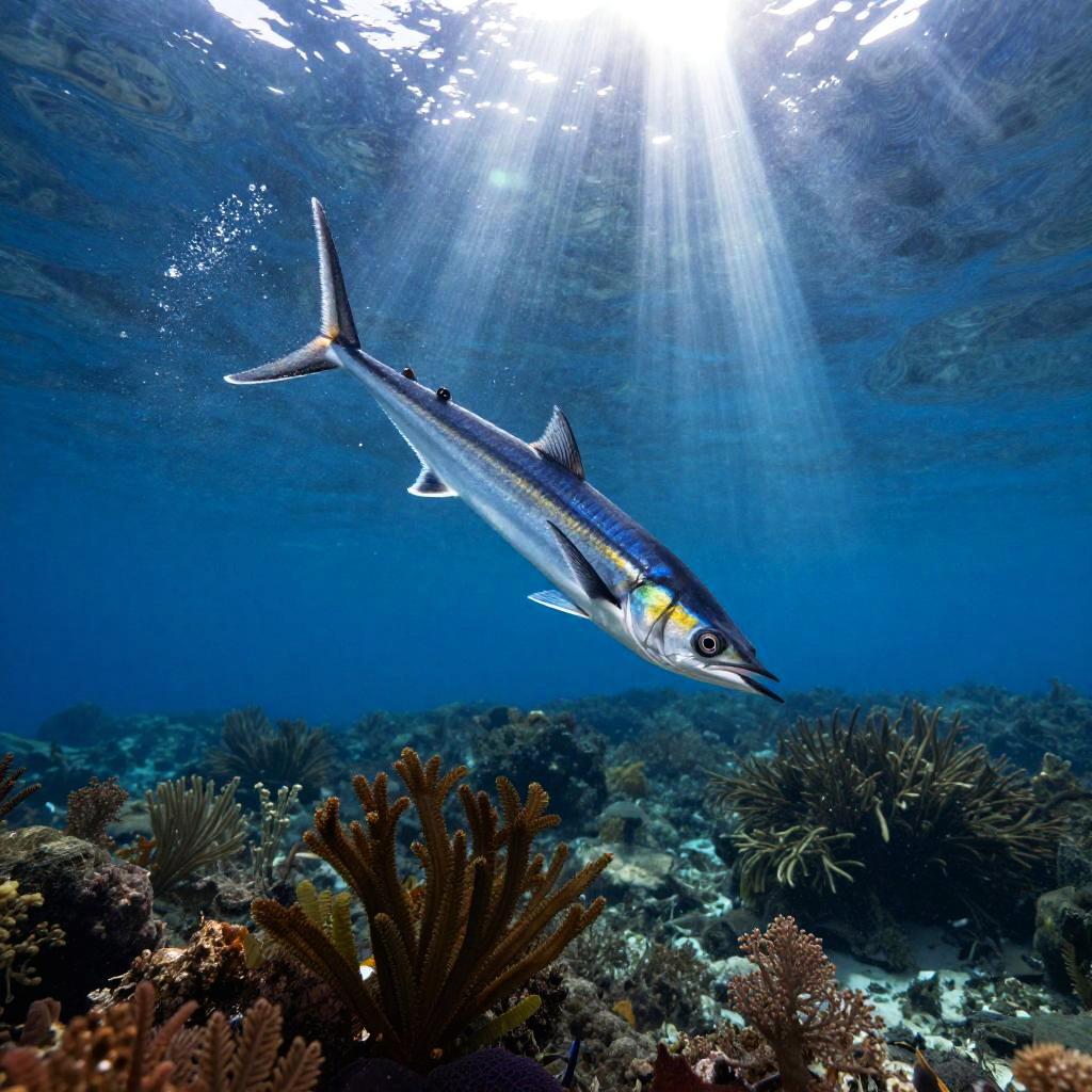 Mid-Leap Flying Fish Underwater Scene