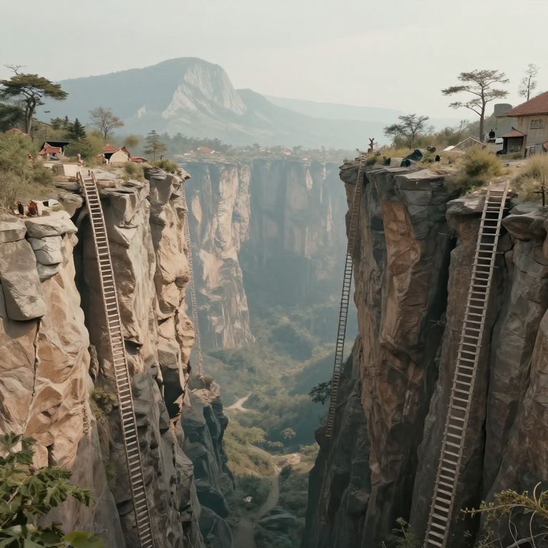 Timeless ladders stretch infinitely between floating millennial cliffs, connecting forgotten epochs and unhistorical mountains.
