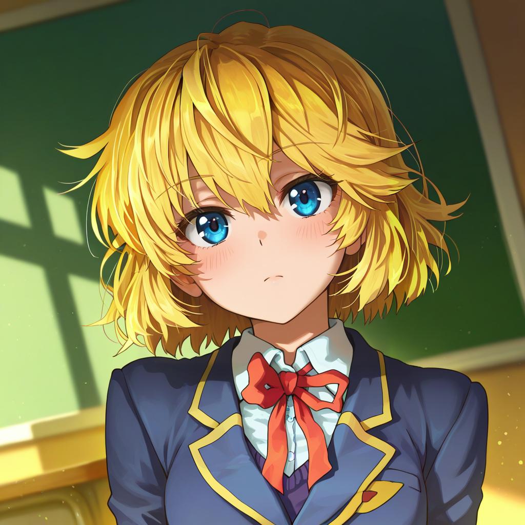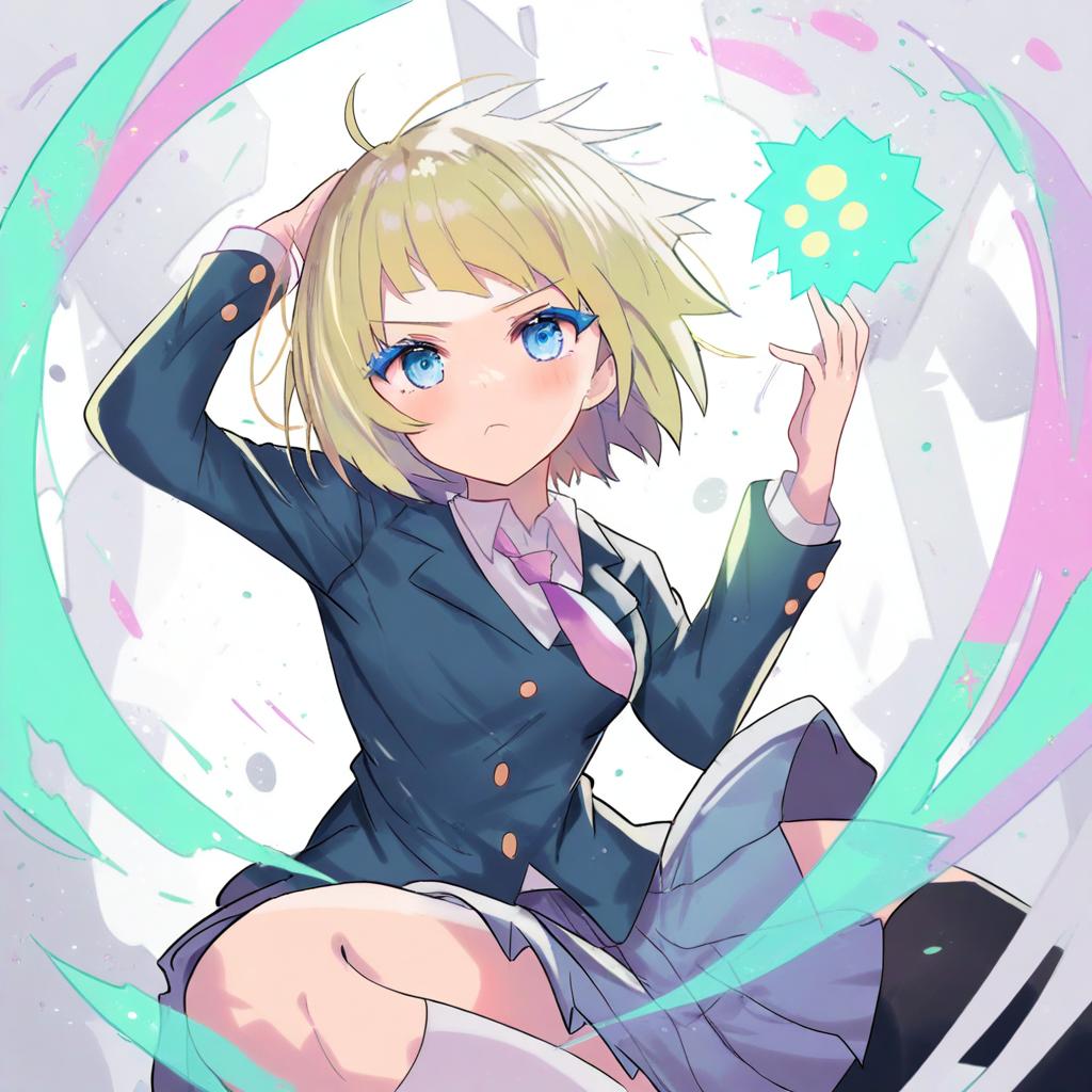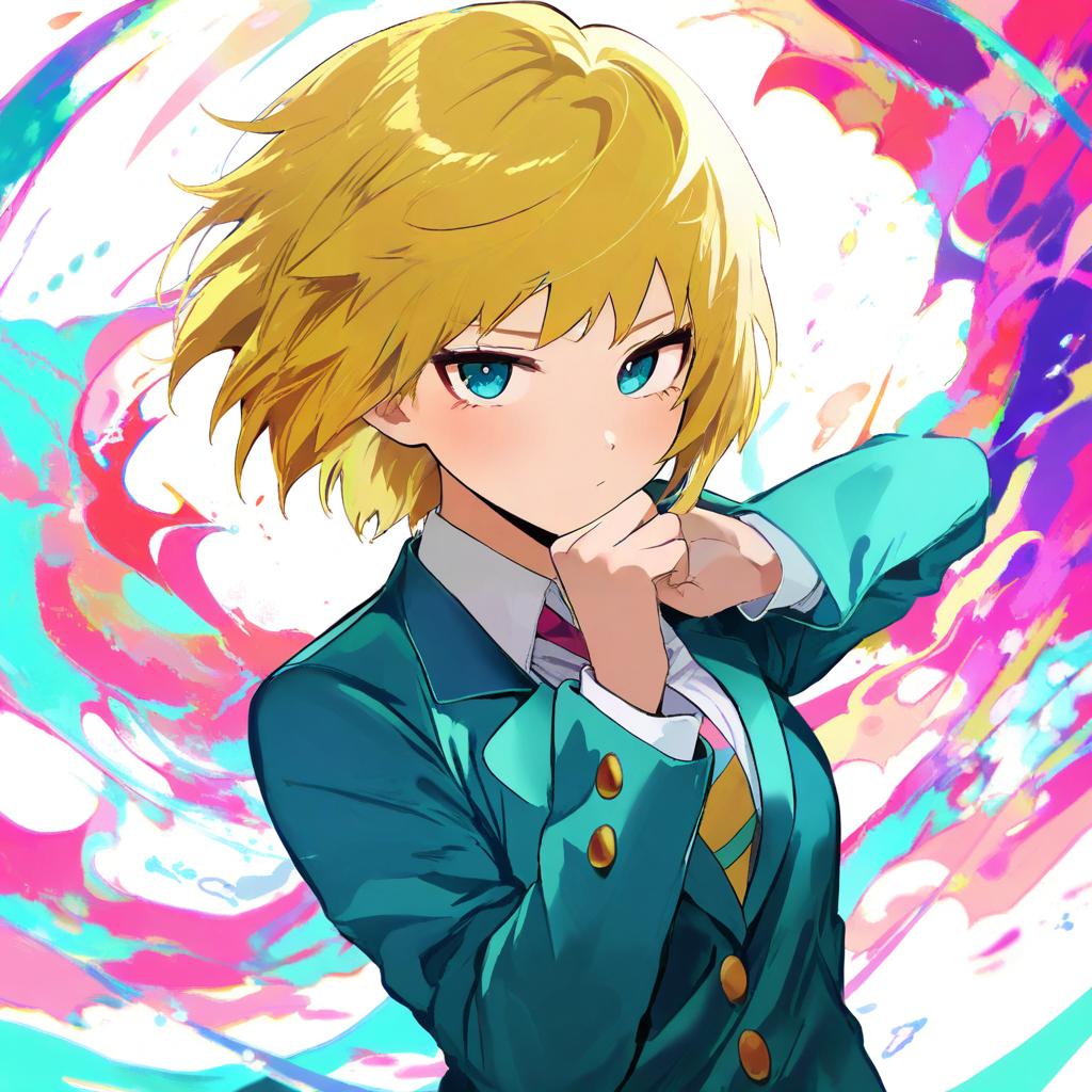 Hanazawa teruki, mob psycho 100, 1boy, blue eyes, short hair, blonde hair, school uniform, collared shirt, school uniform, long sleeves, blazer, by artist hizaka, animagine