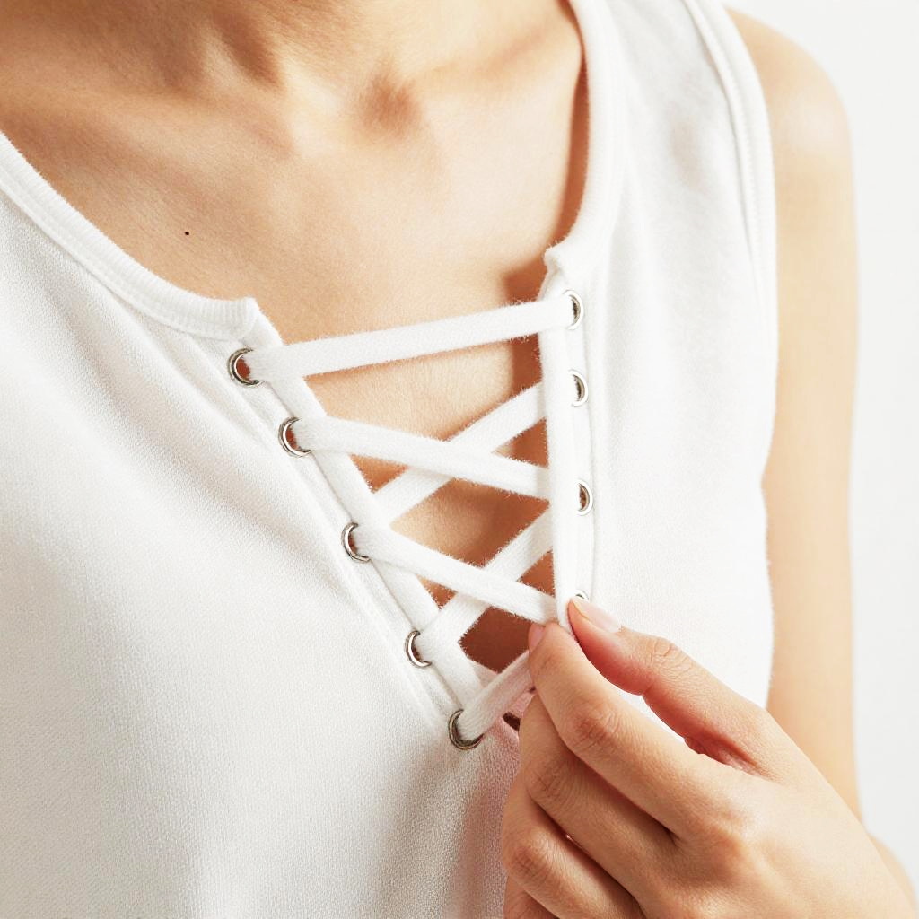 Close-Up of Lace-Up White Top