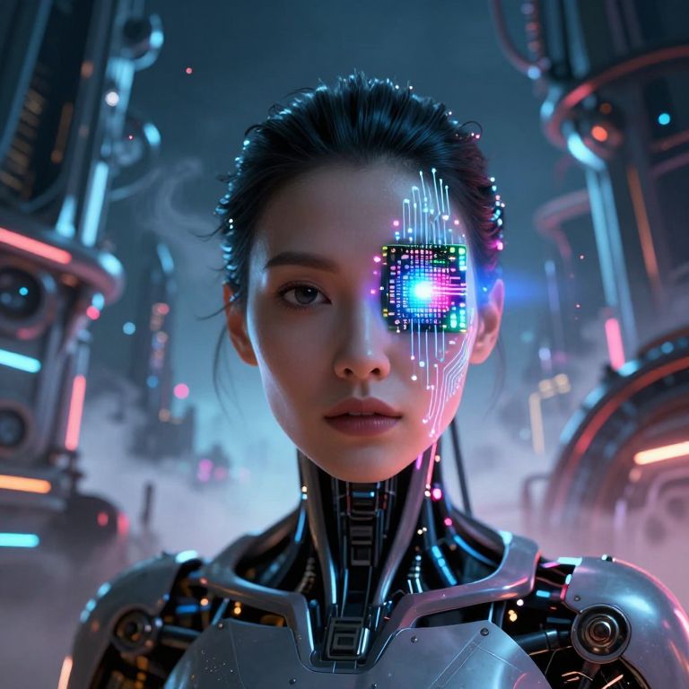 Cybernetic Woman in Dystopian VR