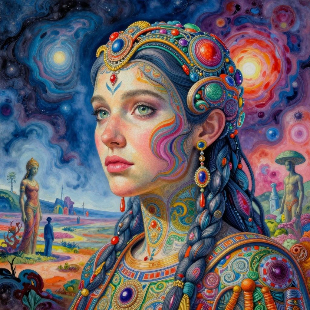 Imbue the image with visions of hope, wonderment, and majestic majesty., optical illusion, masterful, psychedelic grainshading print by moebius and stephen gammell, symbolism. 8 k resolution, xparticles, intricate artwork : 0, high quality pixel detail, painting, artstation, (abstract:1.54)., melting scenery, discom + 3 0 clear cubism, beautiful art, light and shadow, hdri, octane render with enhanced colors and perfect well rendered, photorealistic lighting t and light and shadow processed twice, weird design, epic render, rendered with vray, hd ultra realistic igh ultra detailed, dramatic light ambient occlusion, trending on artstation trending on artstation, best practice, masterpiece, godly shading, artstationHD, smooth gradients, sharpness, cyborg, astrophotography, monumental details, illusion, hyper-inspiring