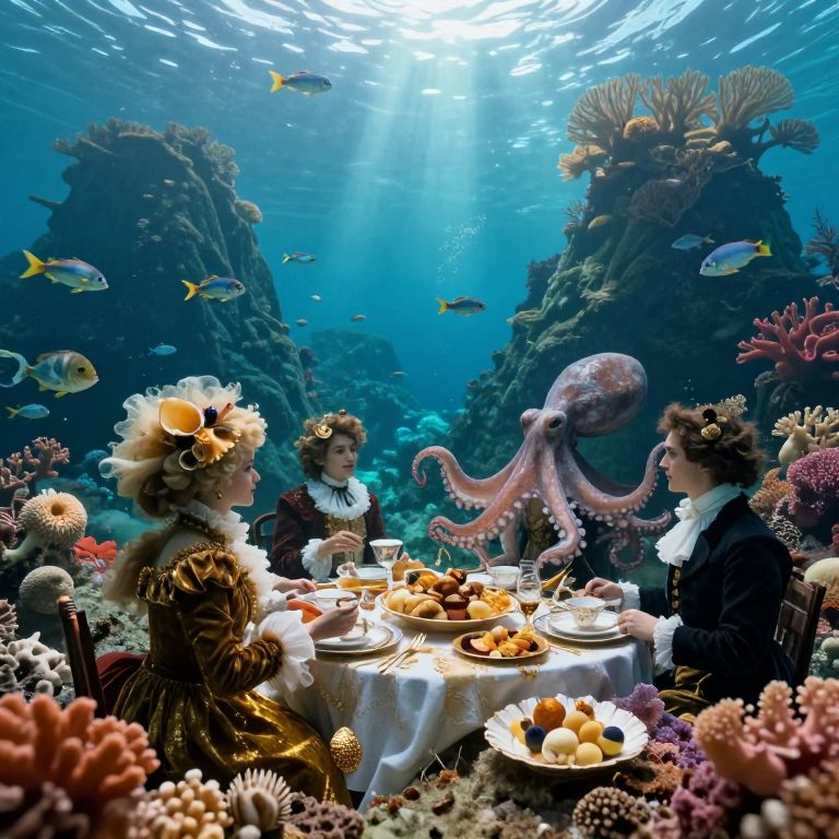 Surreal Underwater Tea Party Scene