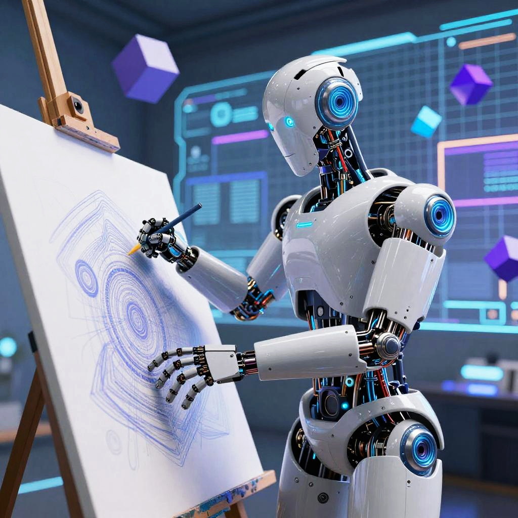 Futuristic AI Robot Creating Art