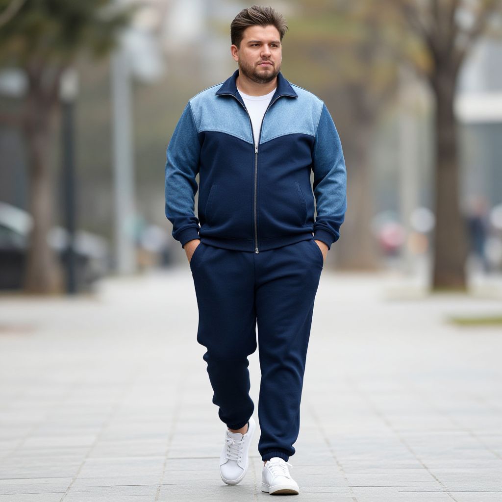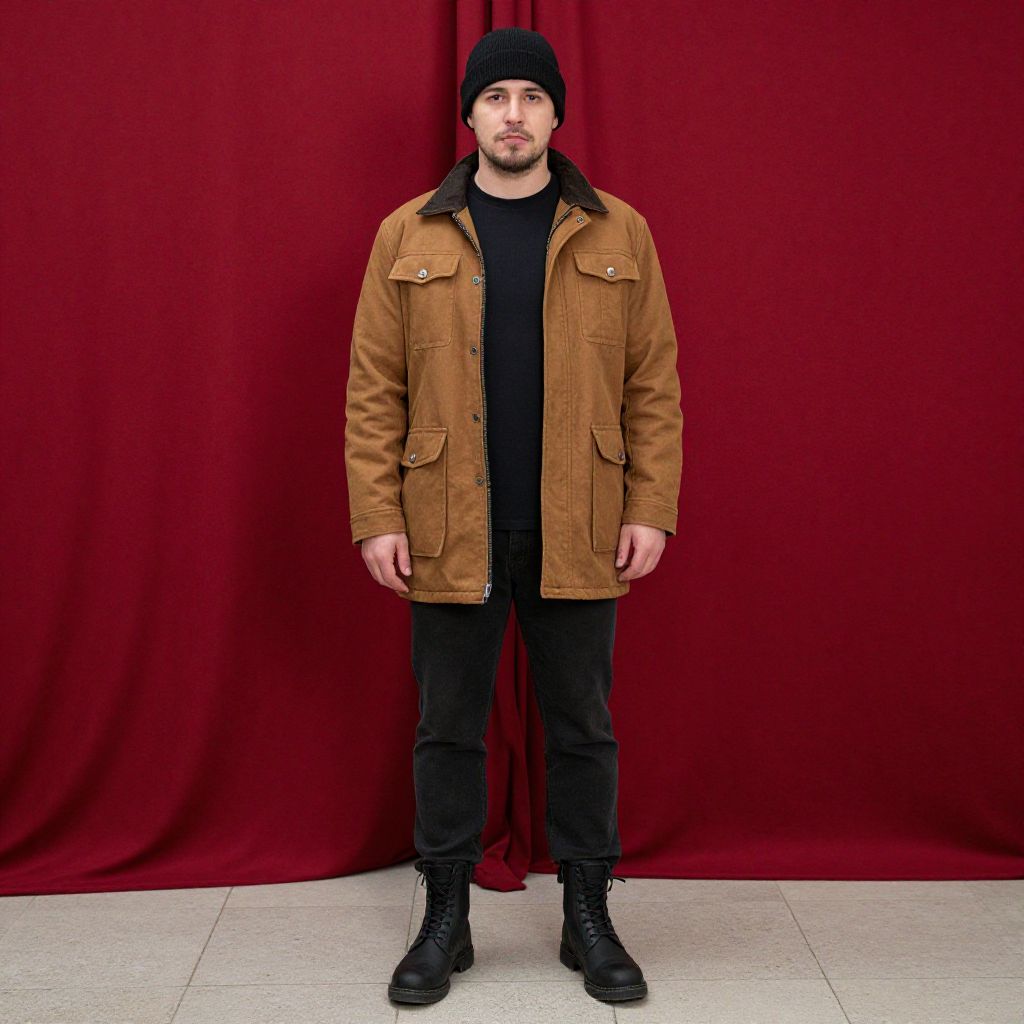 "plus size man costume, 1boy, male focus, solo, jacket, facial hair, hands in pockets, full body, outdoors, pants, standing, looking at viewer, beard, brown jacket, mustache, black footwear, tree, shoes, short hair, blurry background Realistic photo of casual sexy person with pretty face"