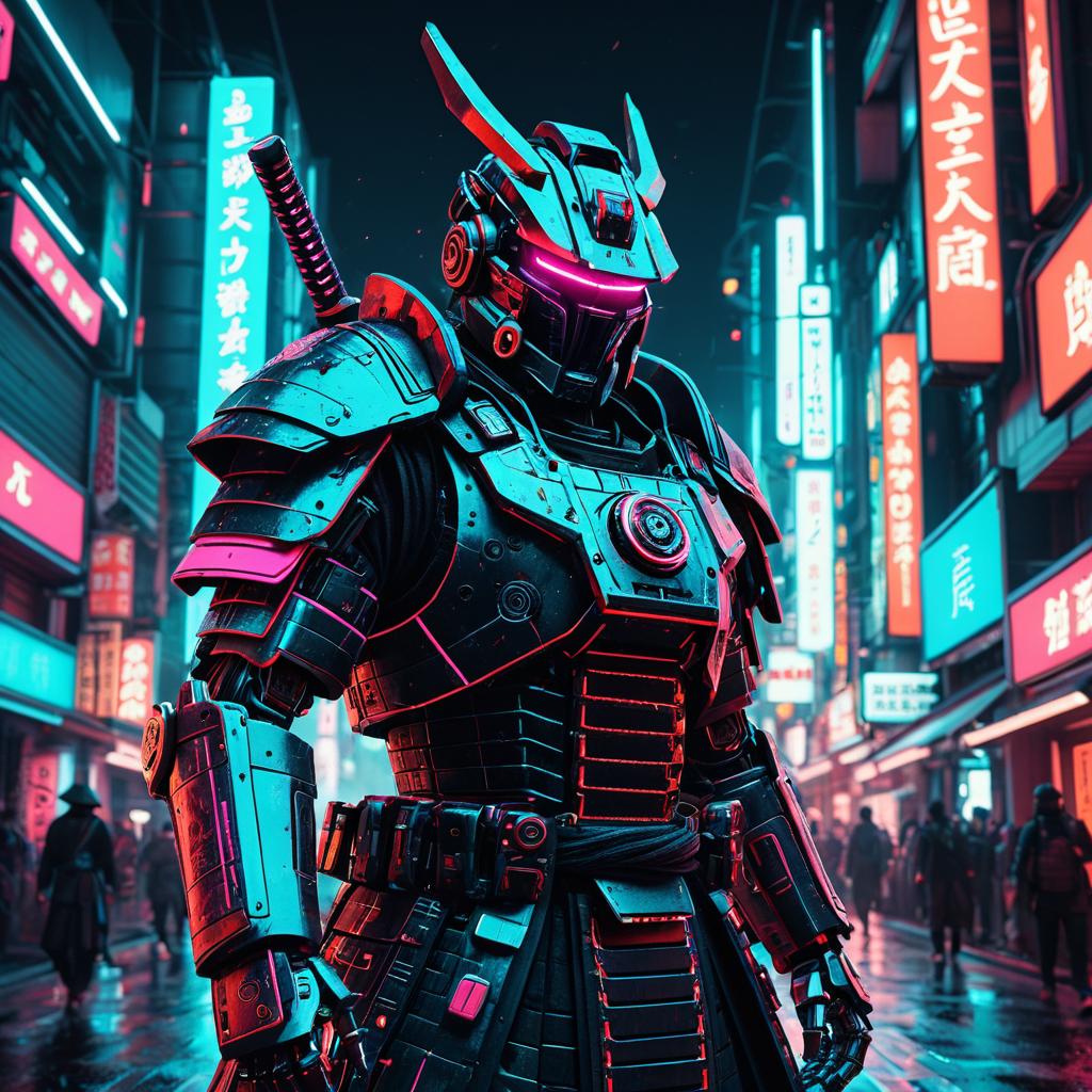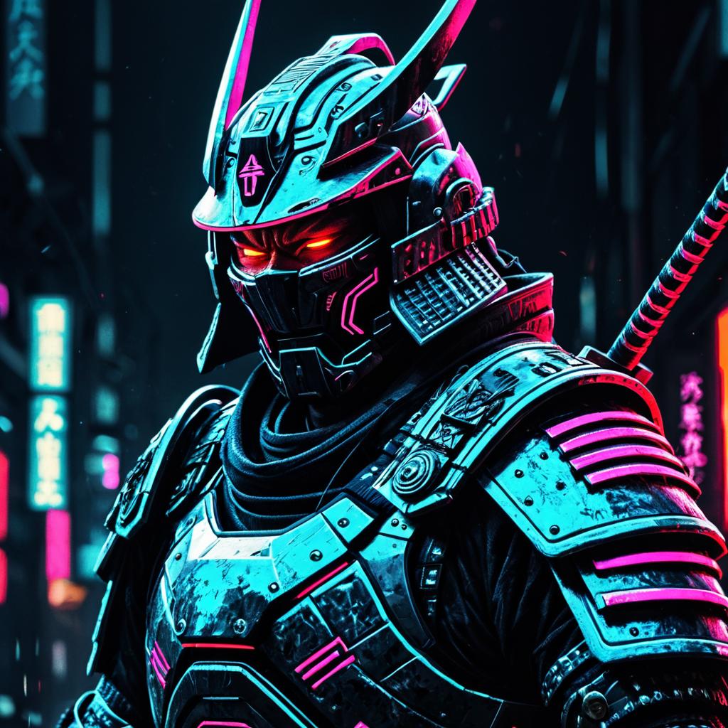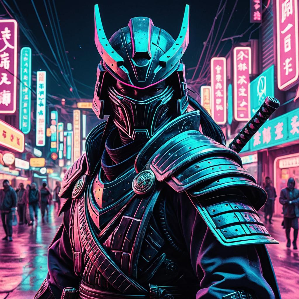 A cybernetic samurai in neon armor, digital painting, epic, detailed