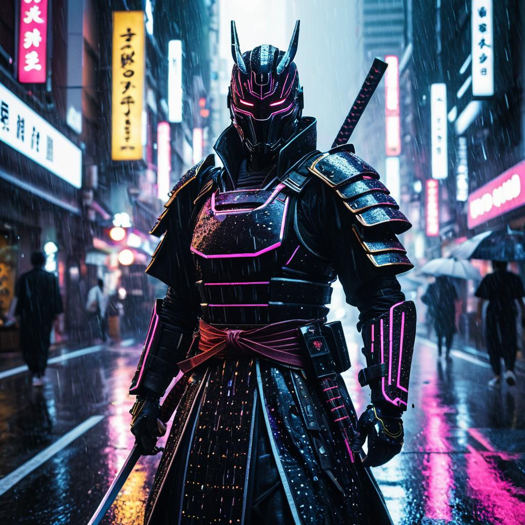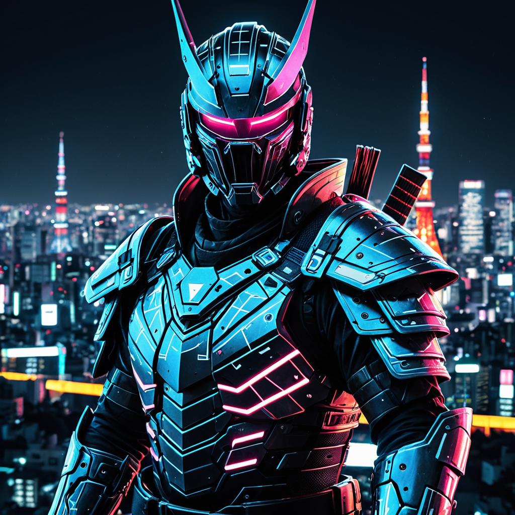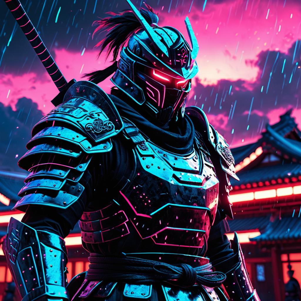 A cybernetic samurai in neon armor, digital painting, epic, detailed