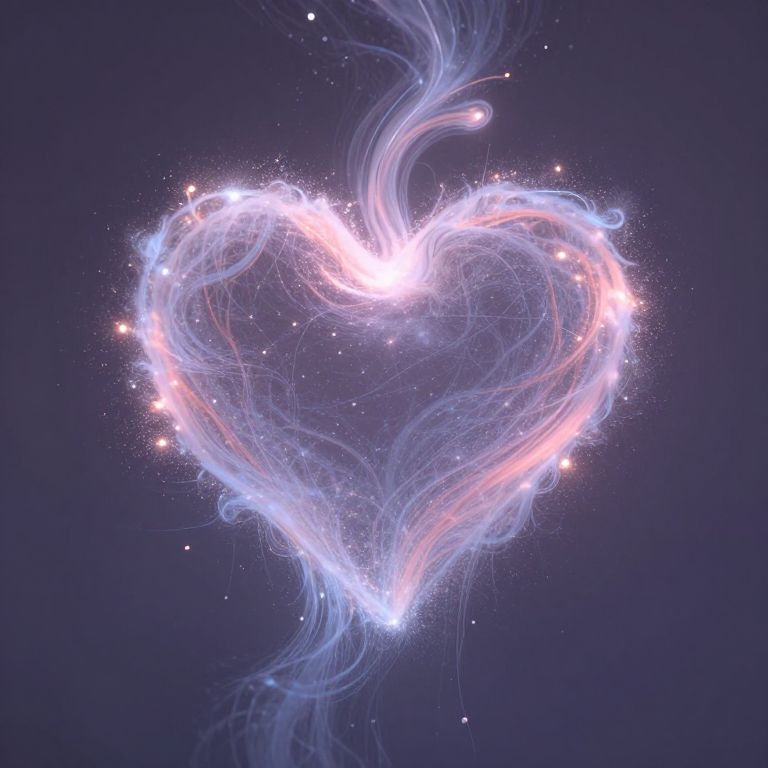 An ethereal heart of love dissolves into a cascade of shimmering particles, symbolizing the transient yet enduring nature of affection, as it whispers a tender melody of hope and connection.
