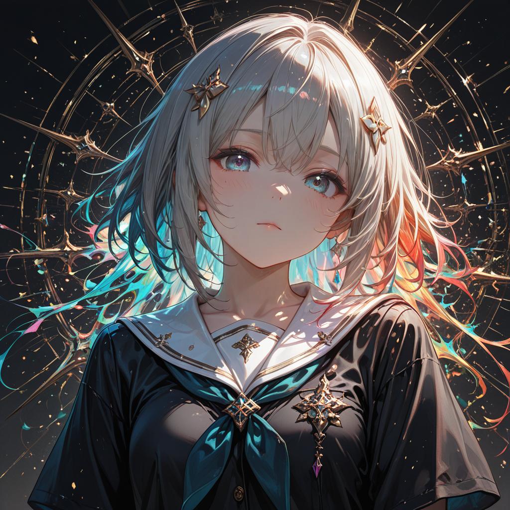 Masterpiece, best quality, 1girl, fractal art, colorful, upper body, pose