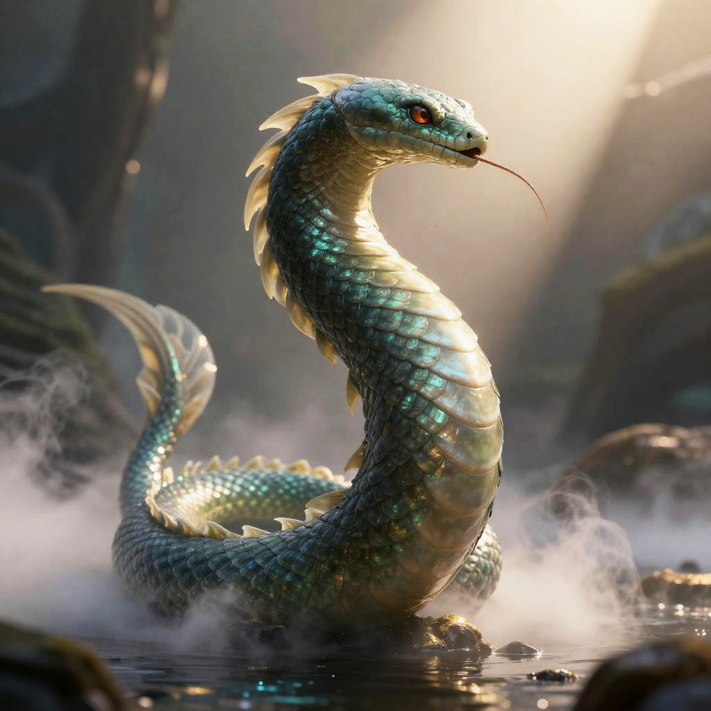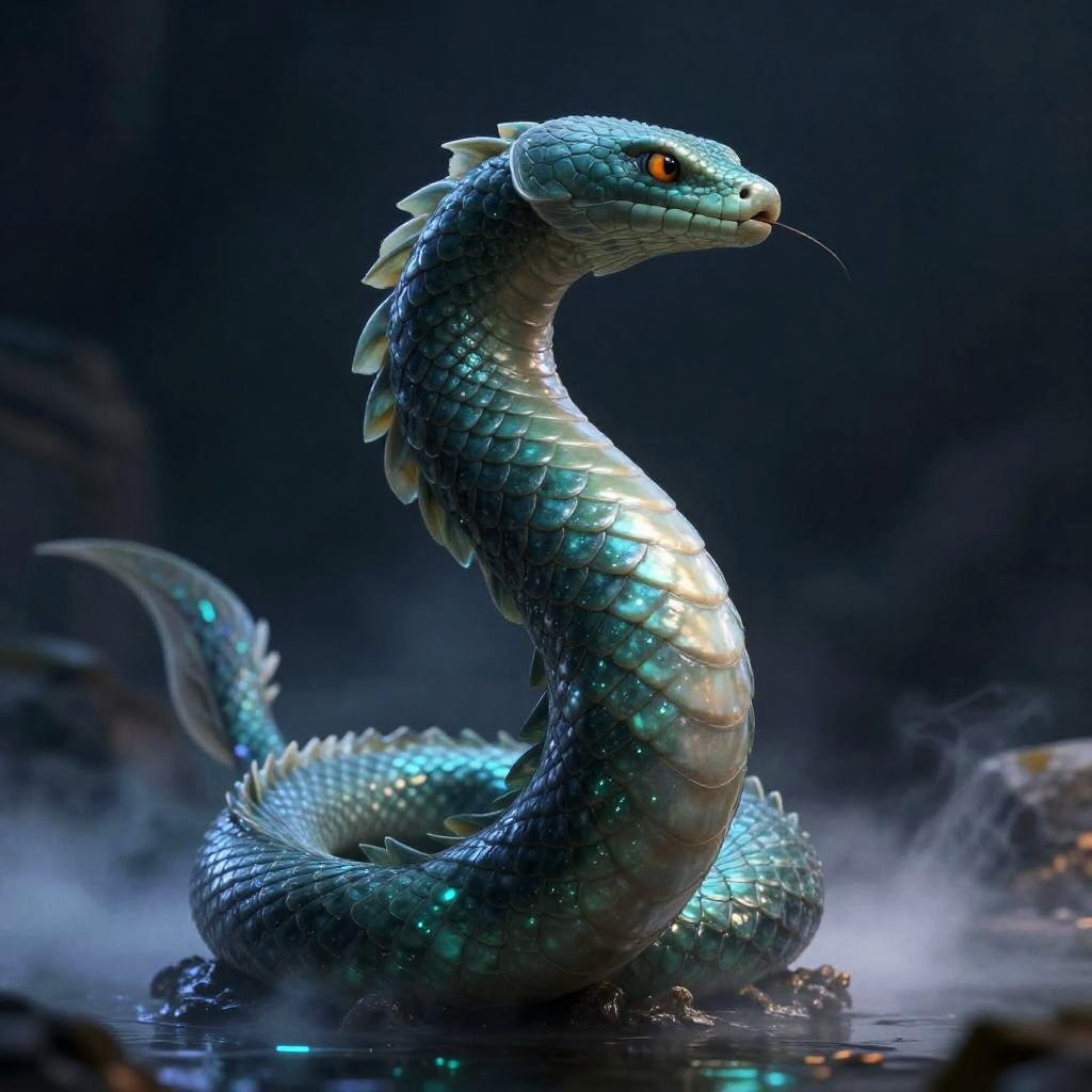 Sea Serpent, posing heroically, heavenly, full body close-up shot, elegant, realistic character concept, high fantasy, bioluminescent mist, golden ratio, cinematic lighting, hyperdetailed, high resolution, insanely detailed and intricate, artstation, marc simonetti, greg rutkowski, octane render, 8k