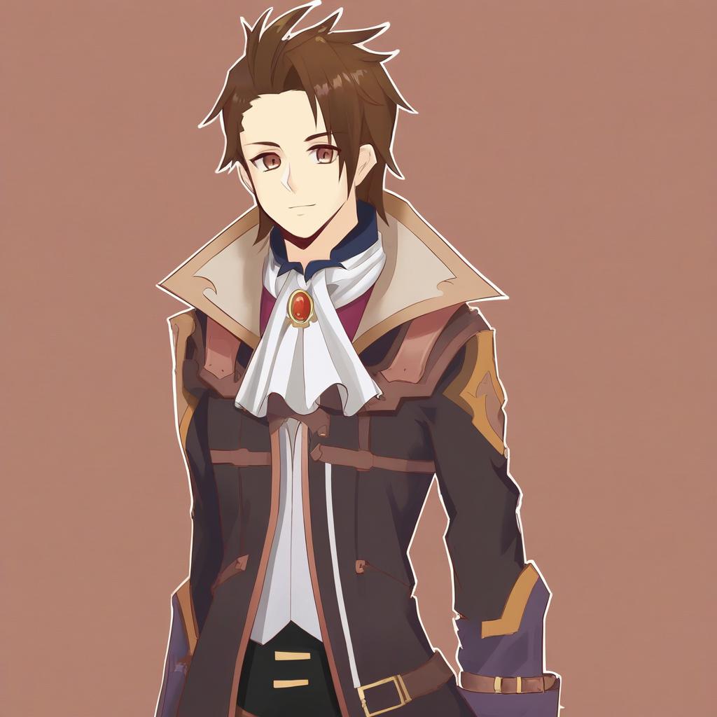 Alvin (tales), tales of (series), 1boy, brown eyes, brown hair, coat, ascot, by artist hirune (konekonelkk), illustrious