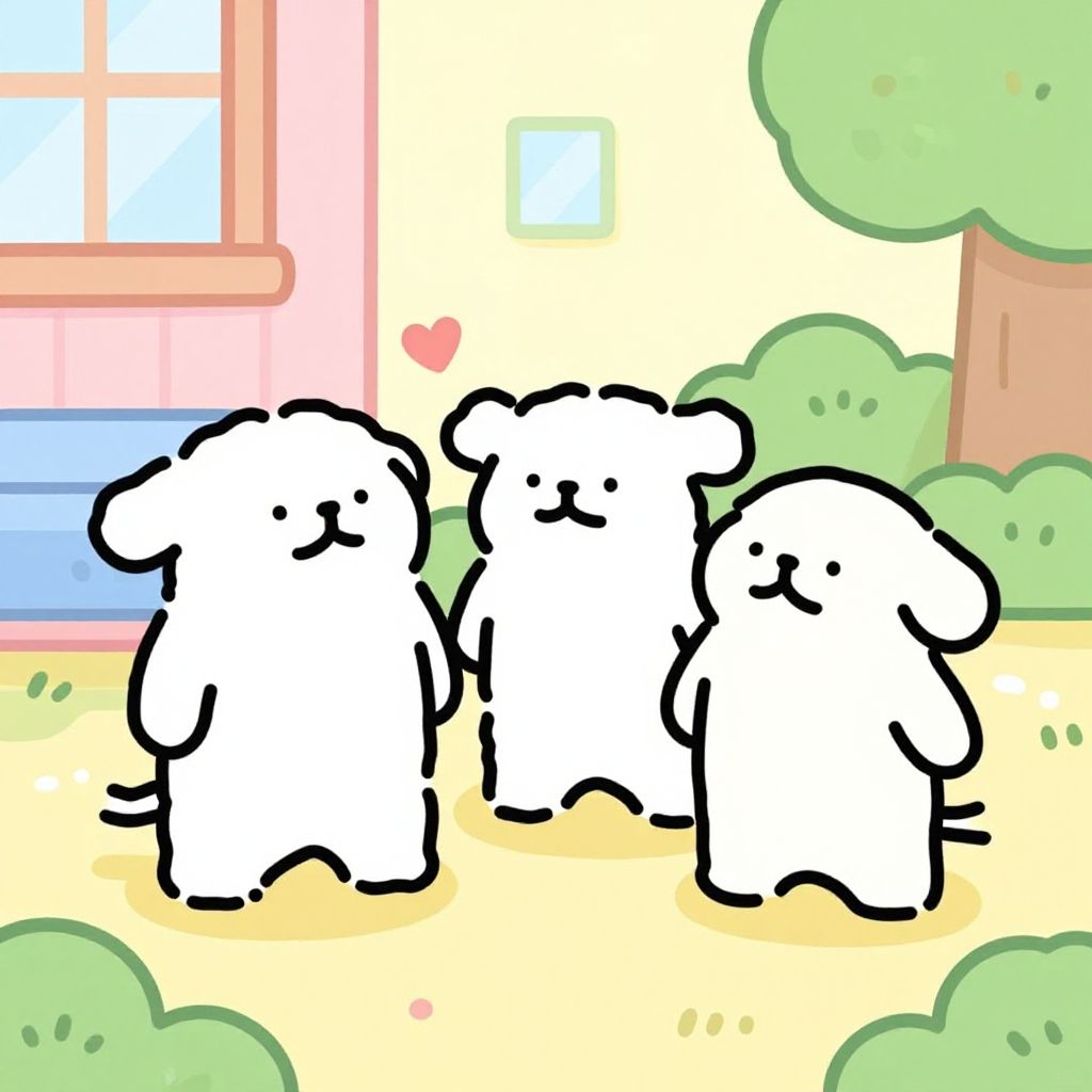 Childish meme theme with simple doodle characters interacting in a surreal, whimsical environment, bold outlines and pastel tones, funny and carefree vibe