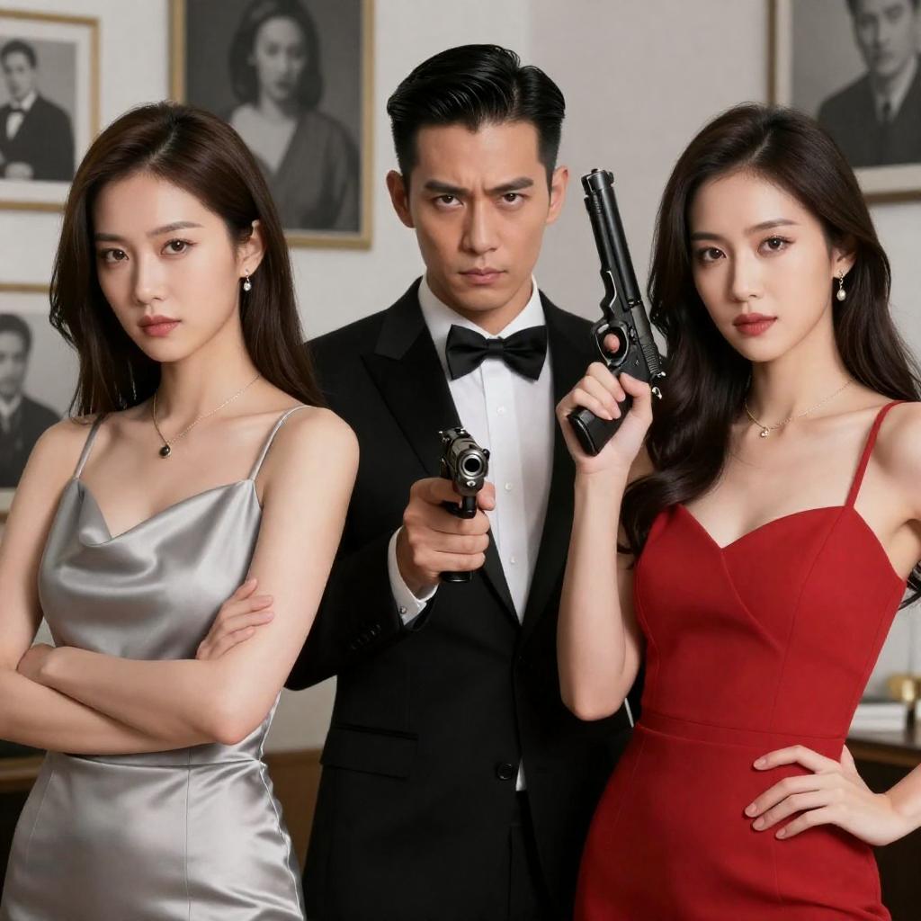 Photograph of a group of six people in a locker room. Foreground: shirtless man with red headband, red bikini woman, blonde woman in blue-striped bikini holding blue towel. Background: shirtless man, blonde woman in black bikini, potted plant, tiled walls. Intense expressions.