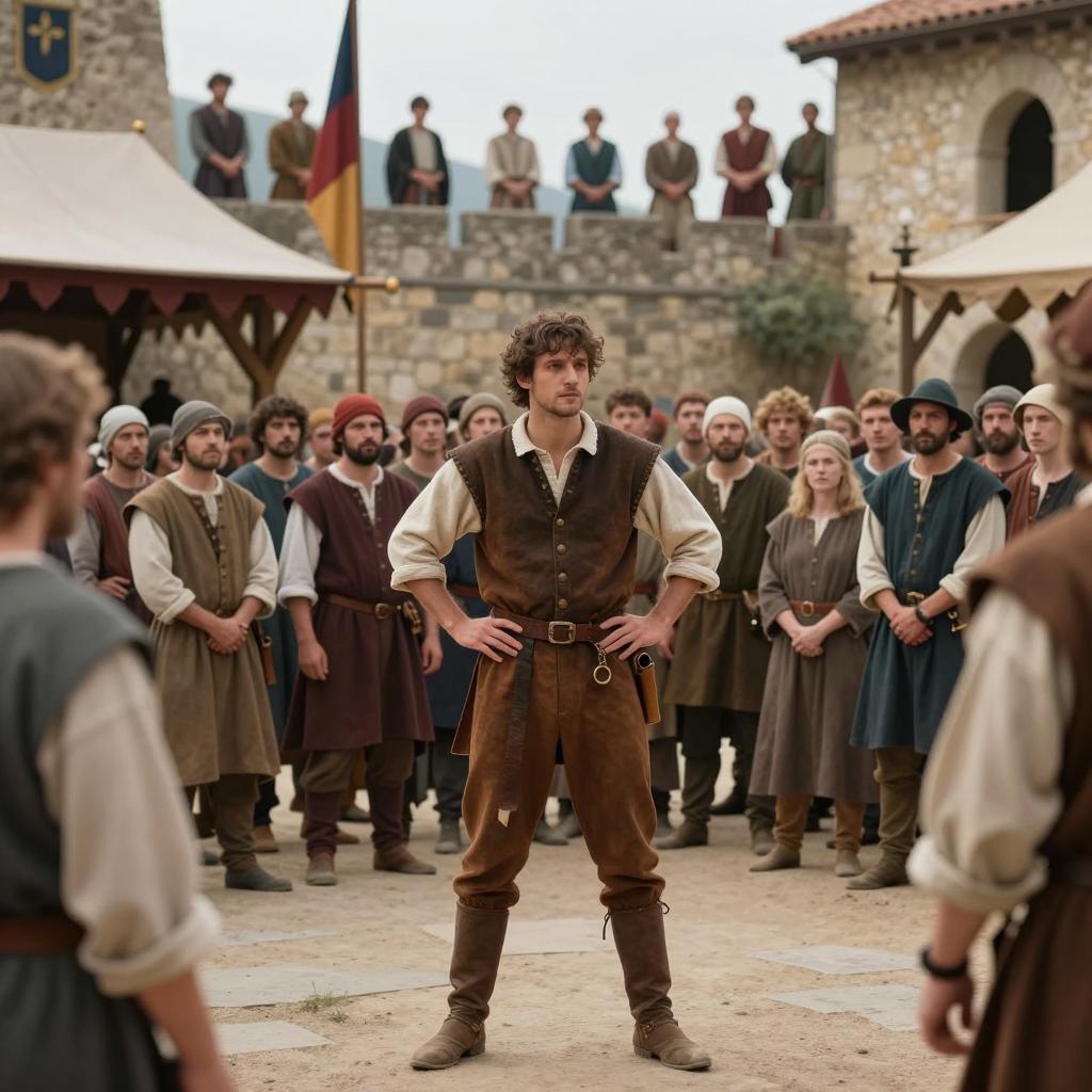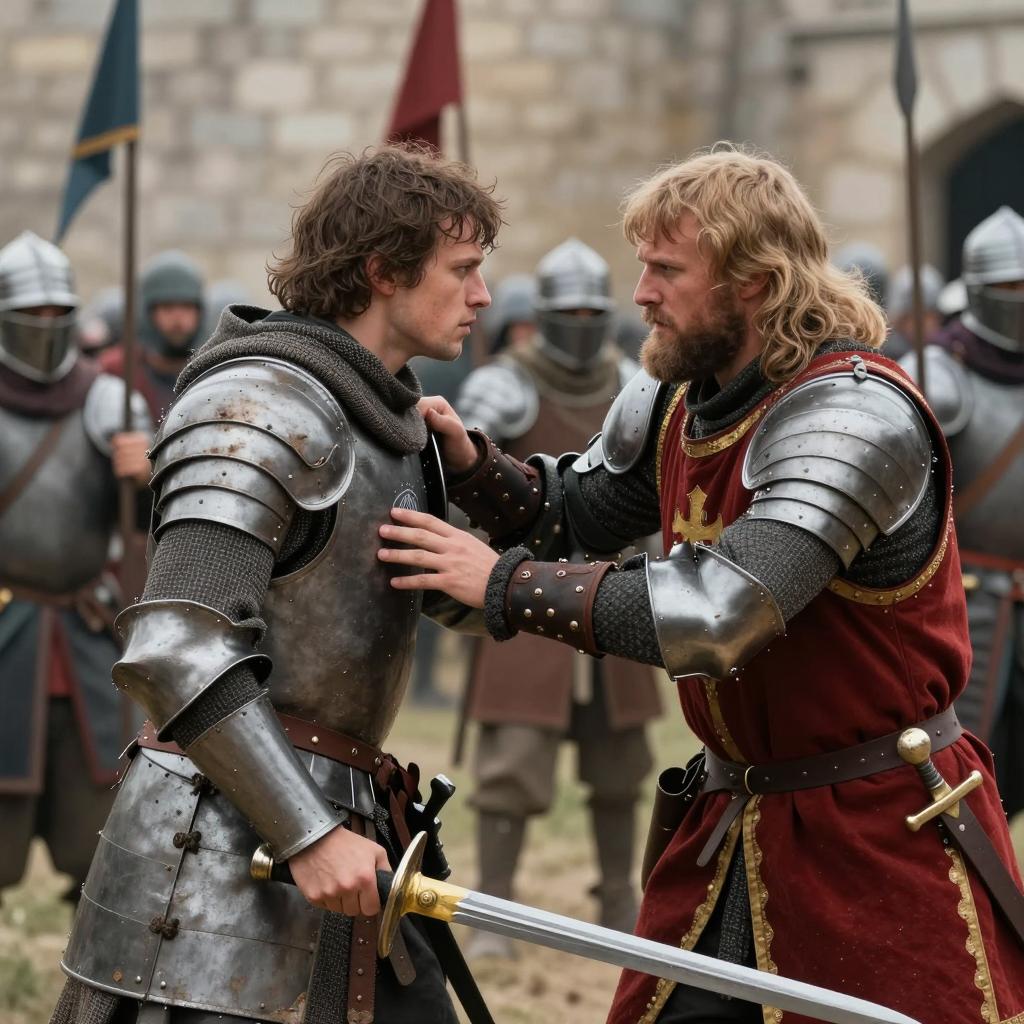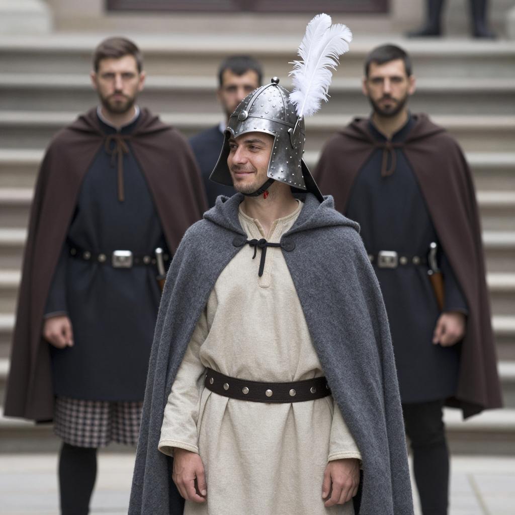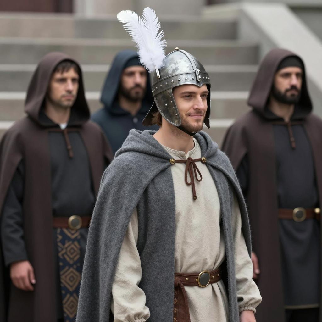 Five Warriors in a Scenic Medieval Landscape