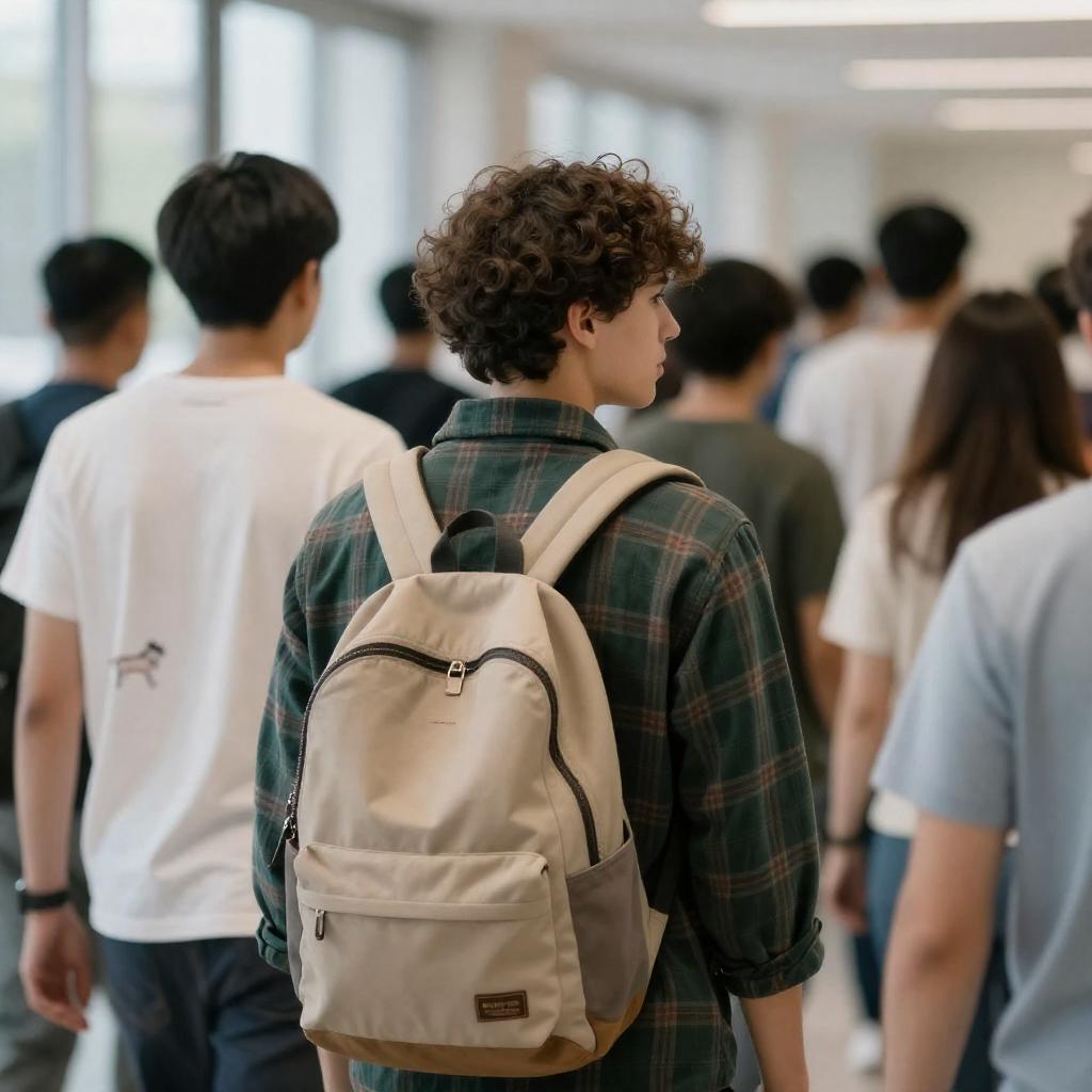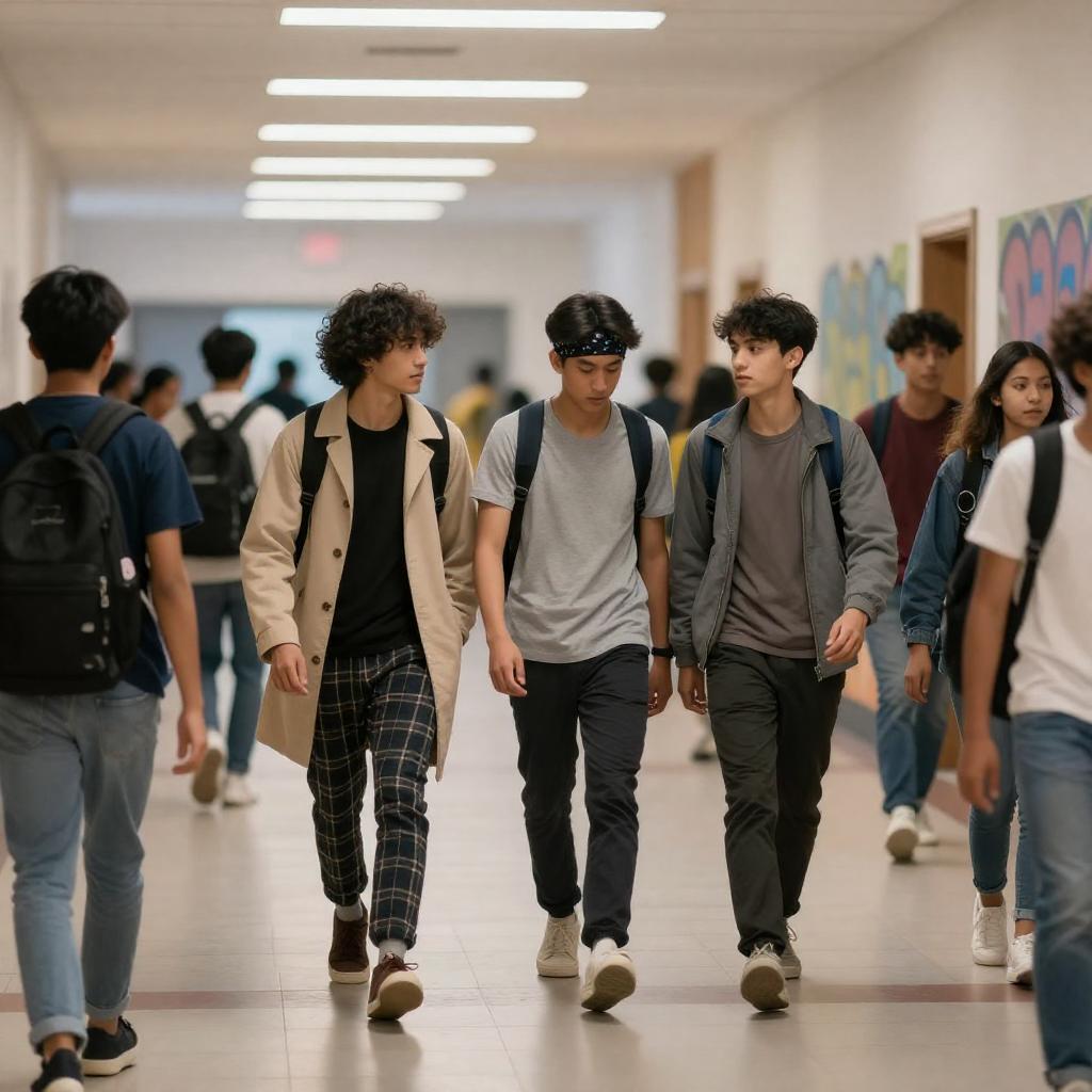 Fluorescent Hallway Young Friends Walking